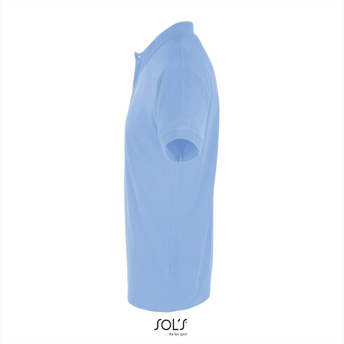 Klassieke heren polo lichtblauw sky blue perfecte pasmaat. Pique poloshirts zitten geweldig fijn. Poloshirts met de weving "Pique" zijn de enorm populair en mogen niet ontbreken in elke kledingkast! De Pique weving wordt ook wel de 'marcella' weving genoemd. Pique verwijst naar een weefstijl die normaal wordt gebruikt met katoenen garen. Poloshirts met een Pique weving zijn een genot voor je lichaam als je ze aantrekt en zitten de hele dag heerlijk. Polo shirt is voorzien van rib kraag en manchetten. 2 knopen kleur op kleur. Dubbele stiksel aan onderzoom. Gesneden en genaaid. Dikte 180 g/m2 Merk: Sol's. Materiaal:100% Combed Ringspun katoen