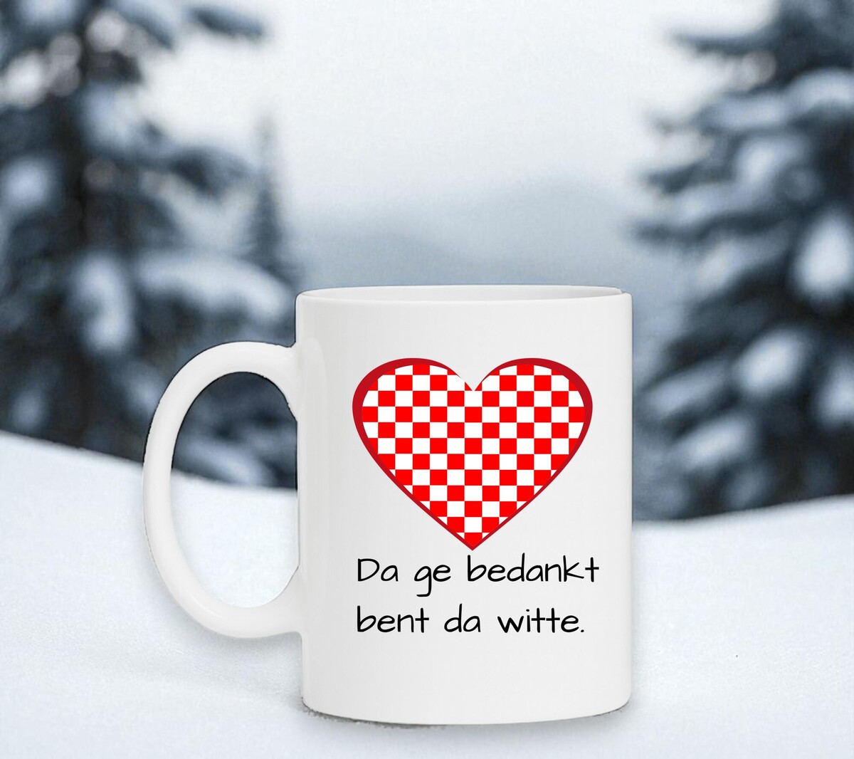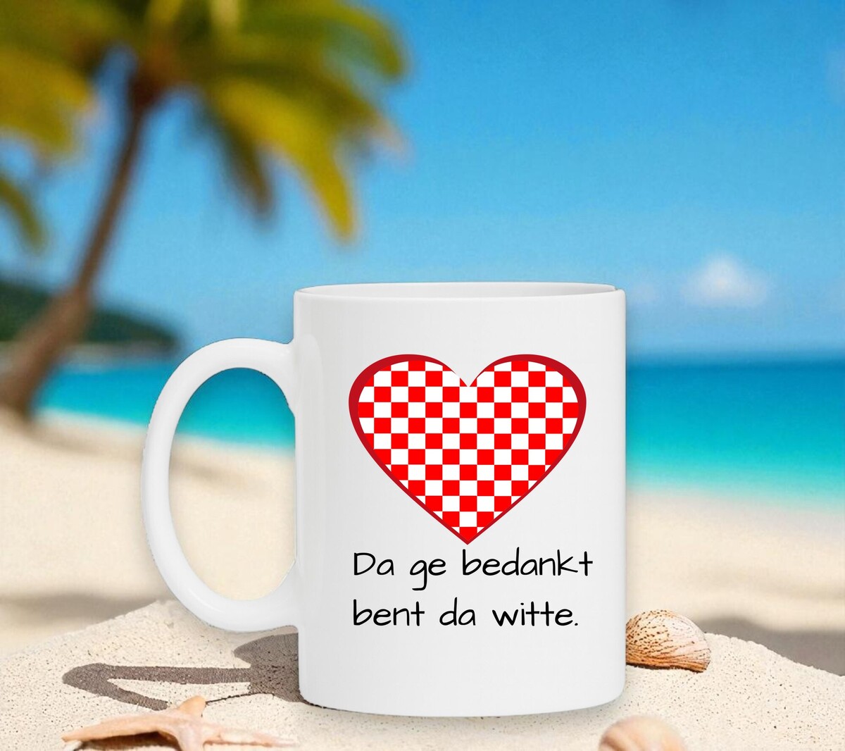 Koffiemok Brabant houden van Da ge bedankt bent da witte. De witte koffie of thee mok is vaatwasserbestendig en magnetronbestendig. De mok heeft een hoogte van 96mm en een diameter van 80mm.