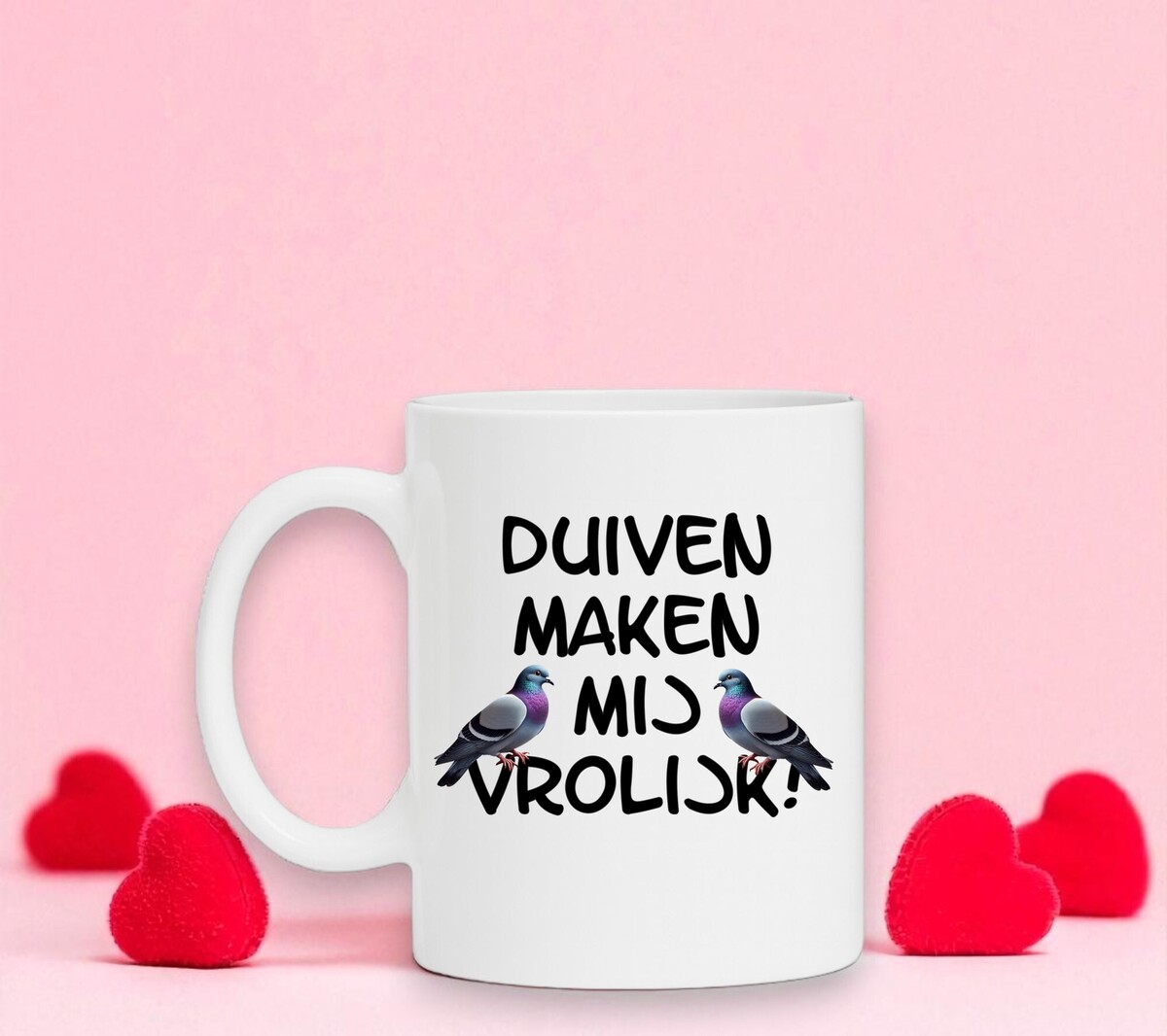 De witte mok is magnetron- en vaatwasserbestendig en heeft een hoogte van 96 mm en een diameter van 80 mm. De inhoud bedraagt ongeveer 330 ml en de keramische coating zorgt voor een duurzame en scherpe opdruk.