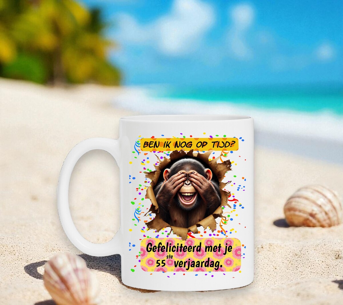 Een te gekke koffiemok voor als jij zo dom bent geweest om hem of haar 55ste verjaardag bent vergeten! Met deze koffiemok kun je de schade geheel herstellen!