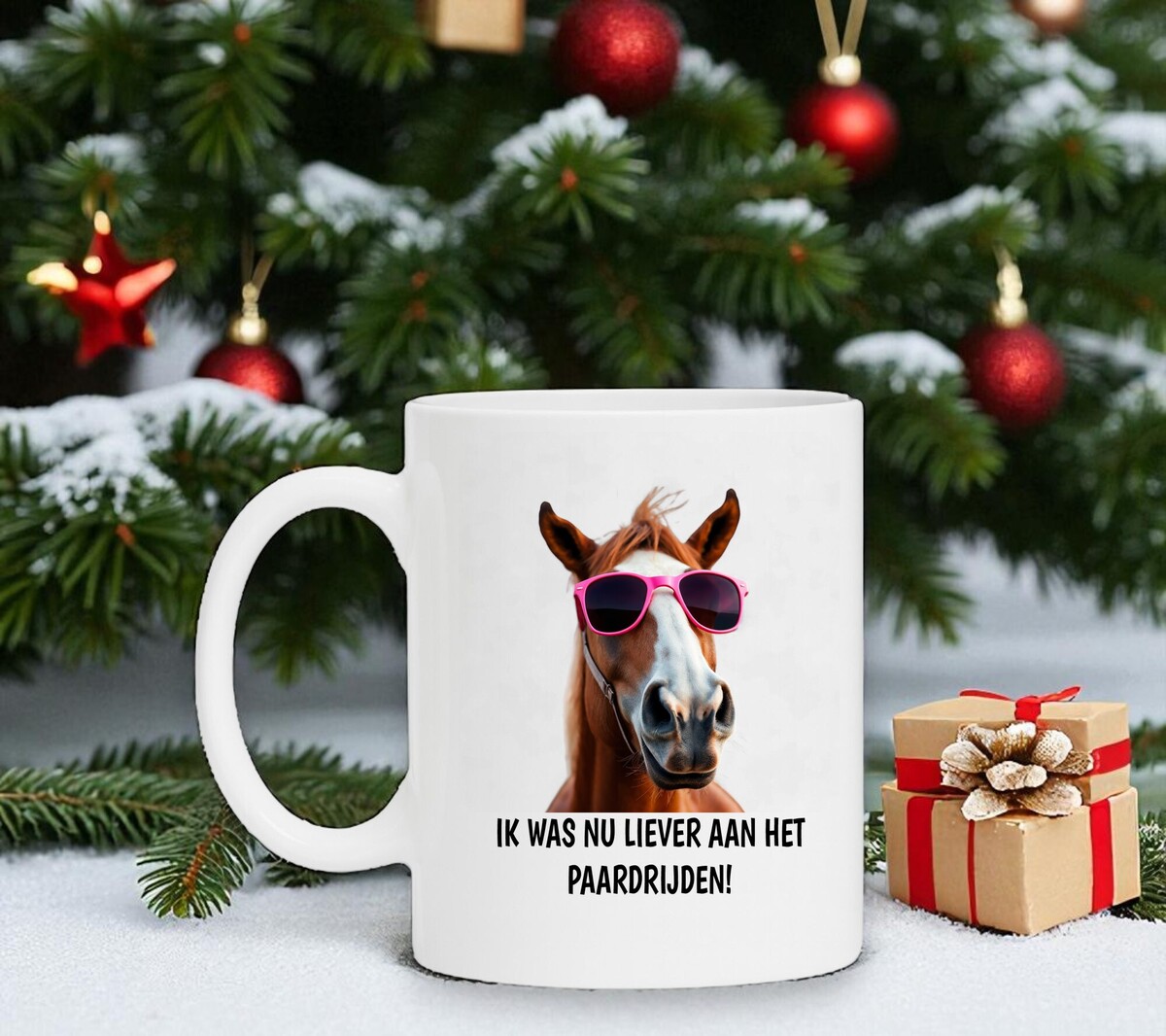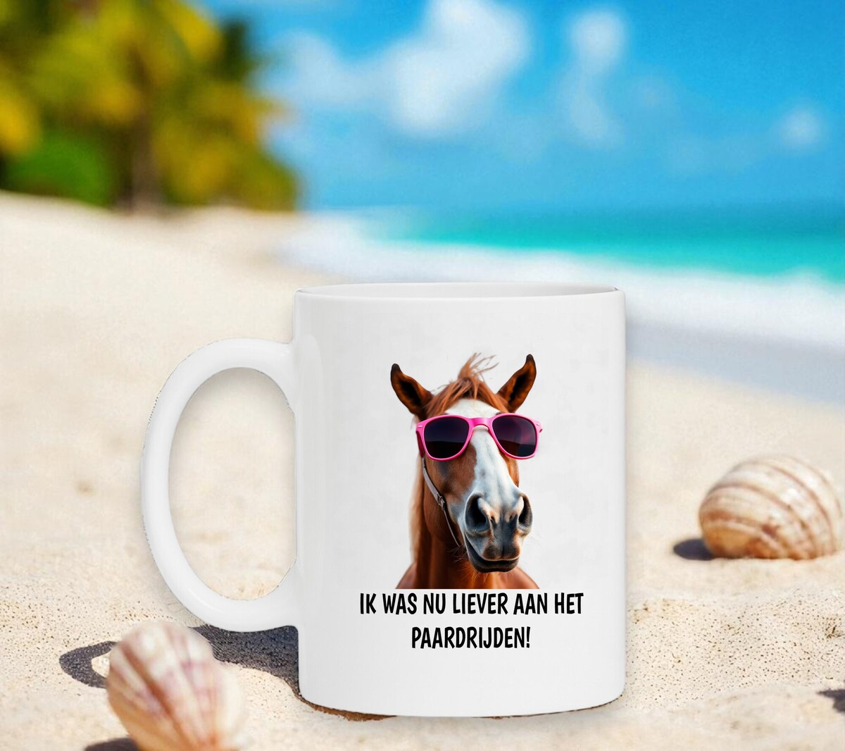 Een grappige koffiemok voor paardrij liefhebbers. Op de mok staat de tekst: Ik was nu liever aan het paardrijden.
