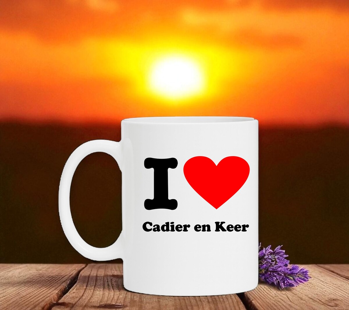 Limburg is een van de mooiste provincie in Nederland. Met zijn mooie natuur maar ook de mooie dorpen en steden. Woon jij in het mooie Cadier en Keer? Dan is deze koffiemok met de tekst: “I love Cadier en Keer” echt iets voor jou. Ook erg leuk om cadeau te doen aan een bewoner van het prachtige dorp Cadier en Keer. Cadier en Keer is een Zuid-Limburgs dorp in de gemeente Eijsden-Margraten