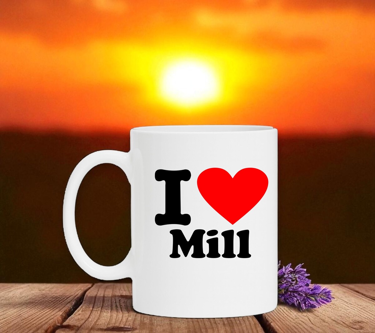 Een leuke koffiemok met de opdruk “I love Mill”. Mill is een dorp in de gemeente Mill en Sint Hubert in de provincie Noord-Brabant in het Land van Cuijk. Het ligt centraal tussen Uden en Cuijk. Erg leuk om cadeau te geven aan iemand die trots is op zijn drop Mill.