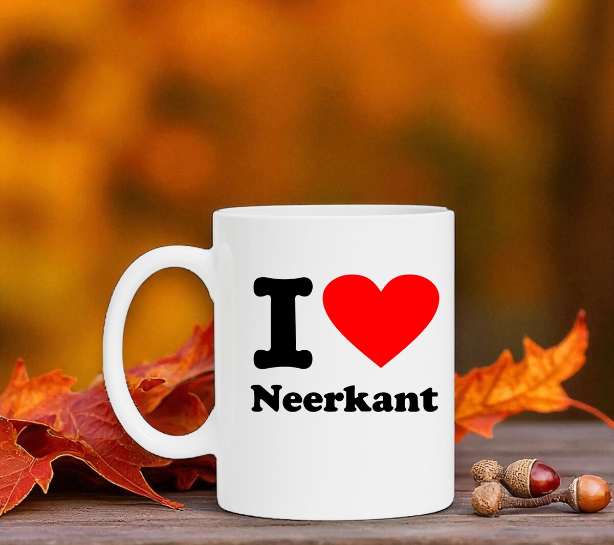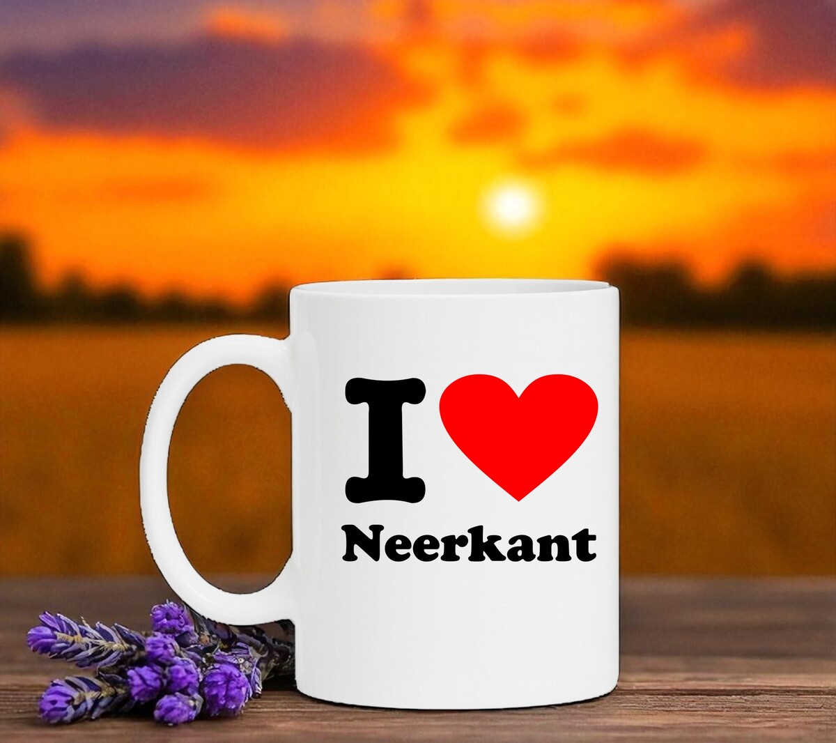 Op zoek naar een leuk cadeautje voor iemand uit Neerkant? Dan is deze i hou van Neerkant koffiemok een leuk cadeau.Neerkant is een dorp in de gemeente Deurne, in de Nederlandse provincie Noord-Brabant, gelegen op de grens met Limburg, nabij Meijel.
