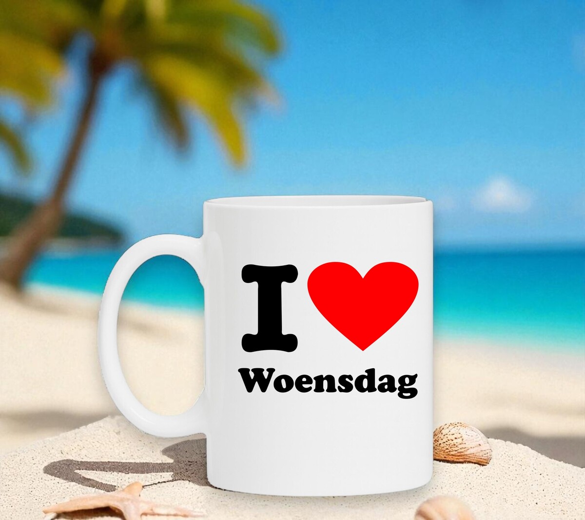 Een leuke koffiemok voor in de kantine. Op de koffiemok staat de tekst: “I love Woensdag”