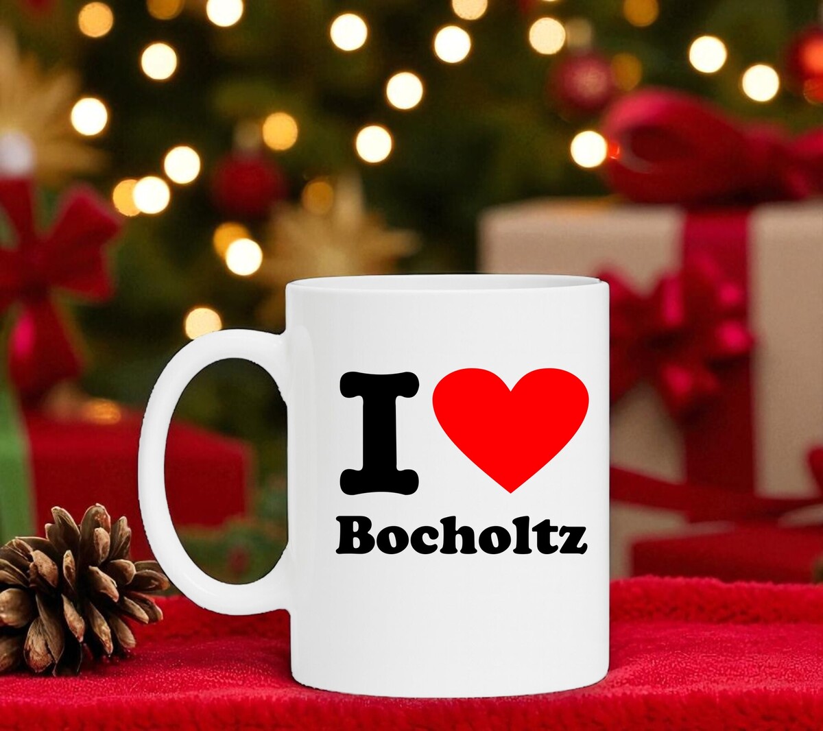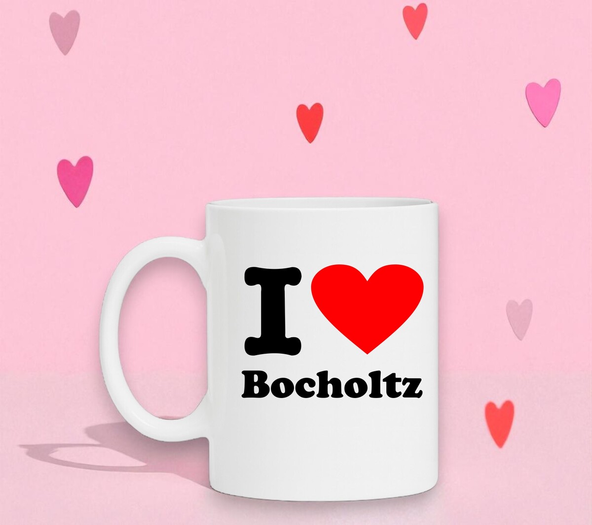 Koffiemok om cadeau te doen of zelf te hebben als je helemaal weg bent van jouw dorp Bocholtz. Op de koffiemok staat de tekst: “I love Bocholtz”. Bocholtz is een kerkdorp in het zuidoosten van de Nederlandse provincie Limburg.