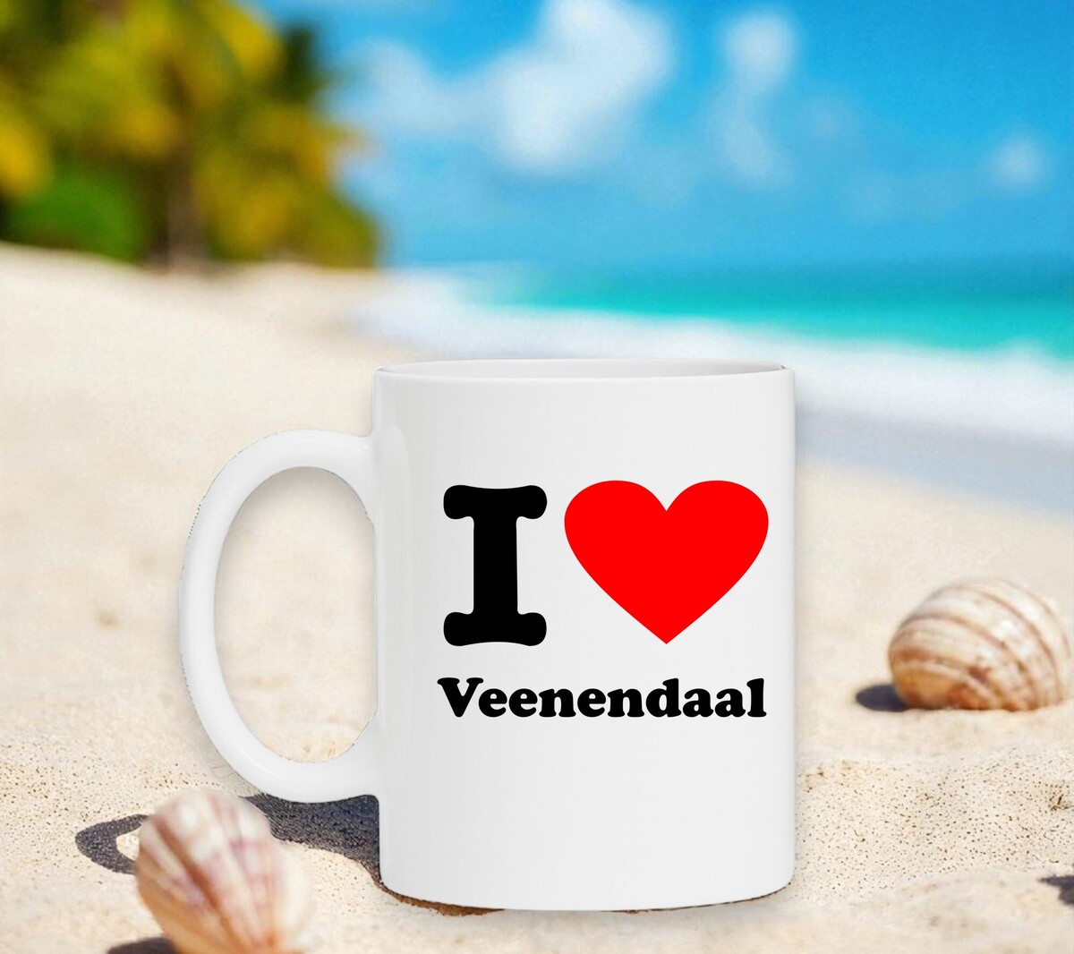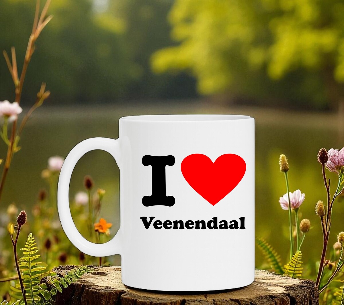 Een leuke koffiemok met de tekst: "I love Veenendaal"