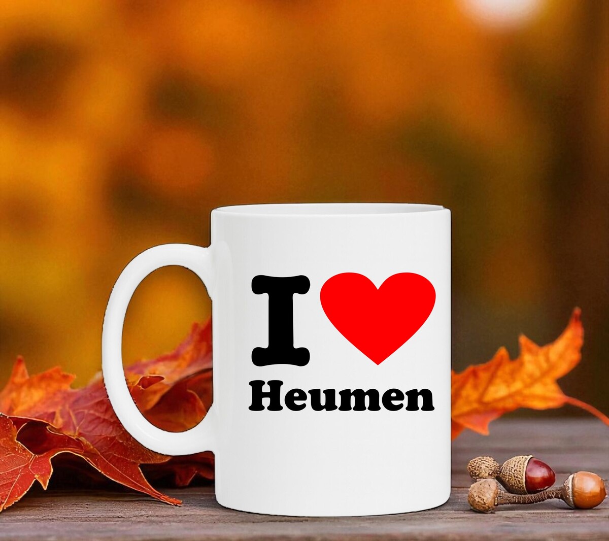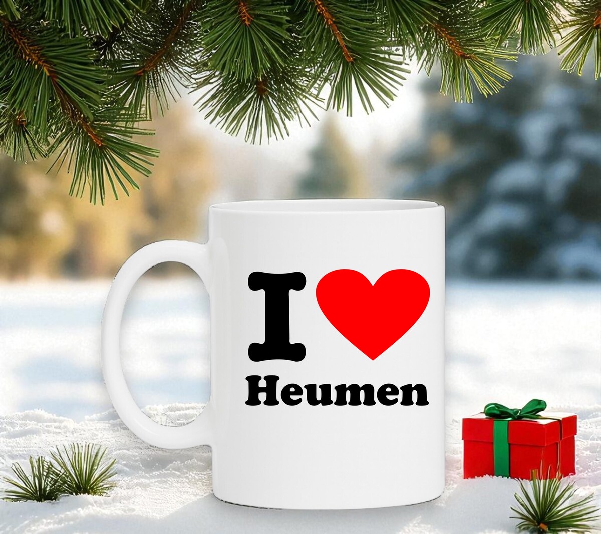 Een leuke design koffiemok voor als je trots bent dat je in Heumen mag wonen.