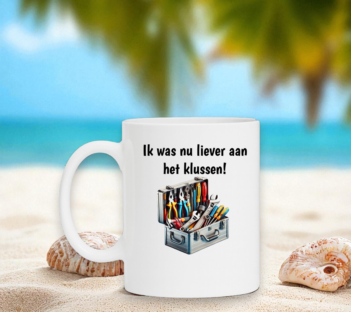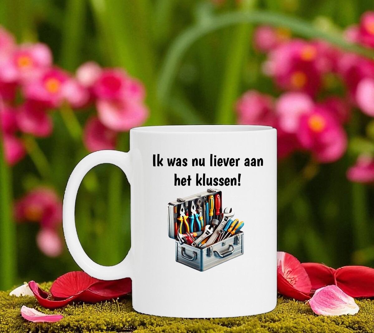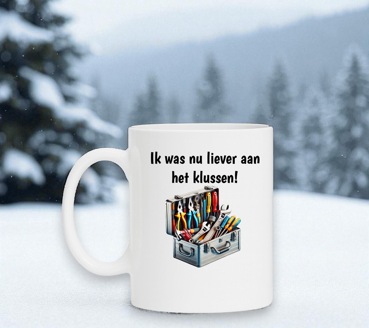 Een leuke koffiemok voor een echter klusser met twee rechterhanden. Ook leuk om kado te geven als je een klusser wilt bedanken voor het verrichte werk!