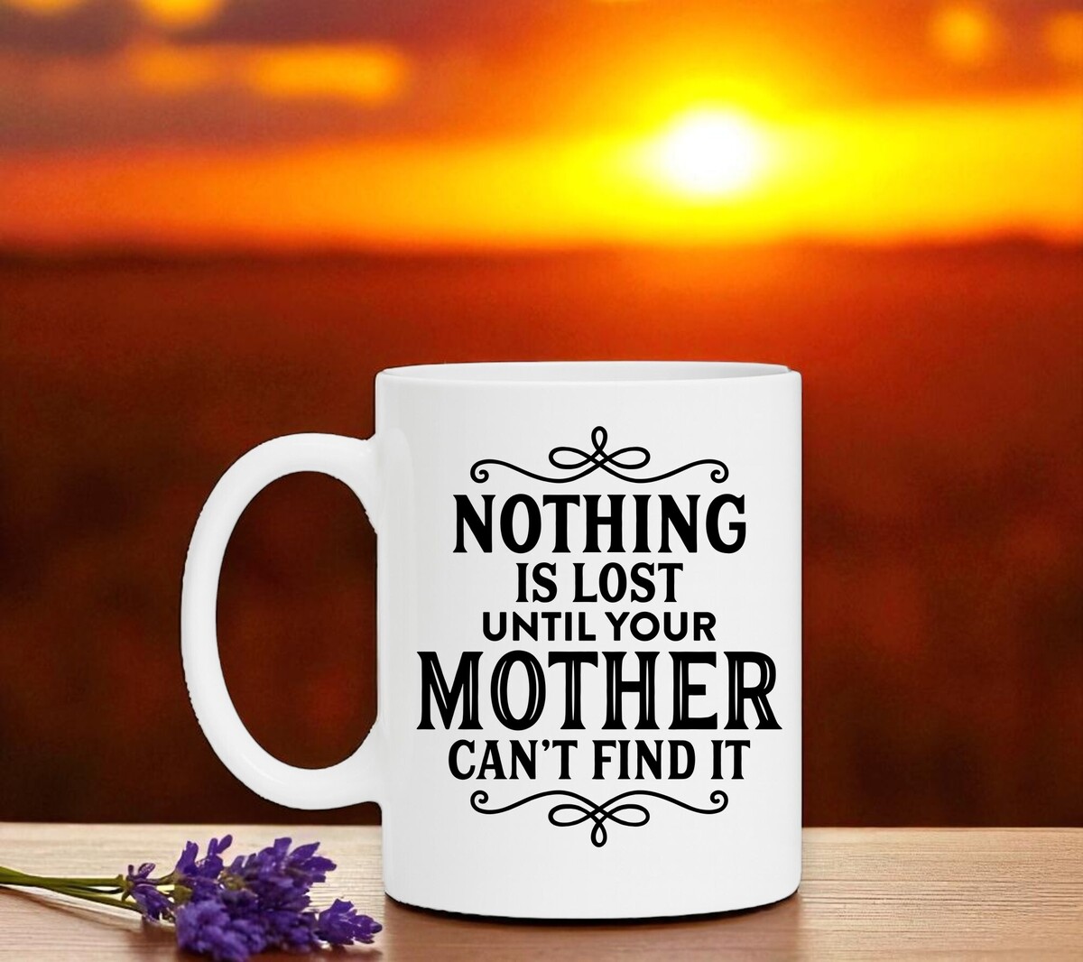 Een superleuk cadeau voor je moeder om bijvoorbeeld te geven met Moederdag of verjaardag! De mok is voorzien van de opdruk: ‘Nothing is lost until your mother can’t find it’ Als je moeder het niet kan vinden dan is het echt kwijt! Een situatie die je allemaal wel bekend voorkomt! De mok is vaatwasser bestendig en magnetron bestendig heeft een hoogte van 96mm en een diameter van 80mm.