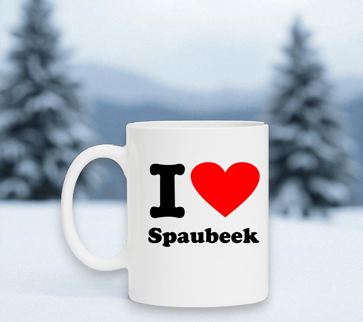 Een prachtige koffiemok voor als jij apetrots bent dat je in het prachtige Spaubeek woont. Op de koffiemok staat de tekst: “I love Spaubeek” Spaubeek is een dorp gelegen in Zuid-Limburg.