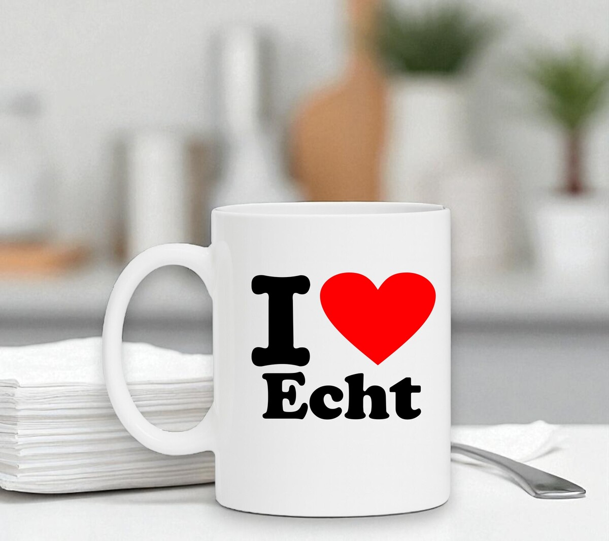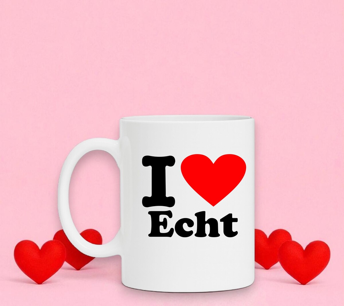 Een prachtige koffiemok voor als jij apetrots bent dat je in het mooie Echt mag wonen. Op de koffiemok staat de tekst: “I love Echt” Echt is een kleine stad in de gemeente Echt-Susteren, provincie Limburg.
