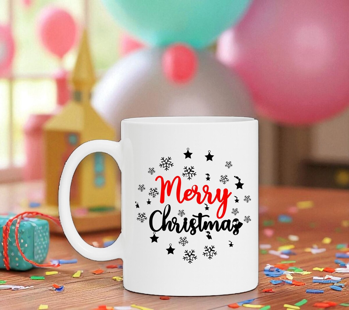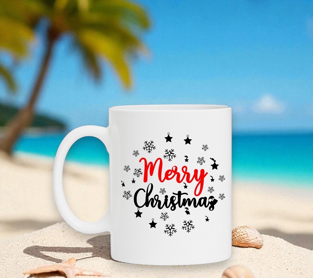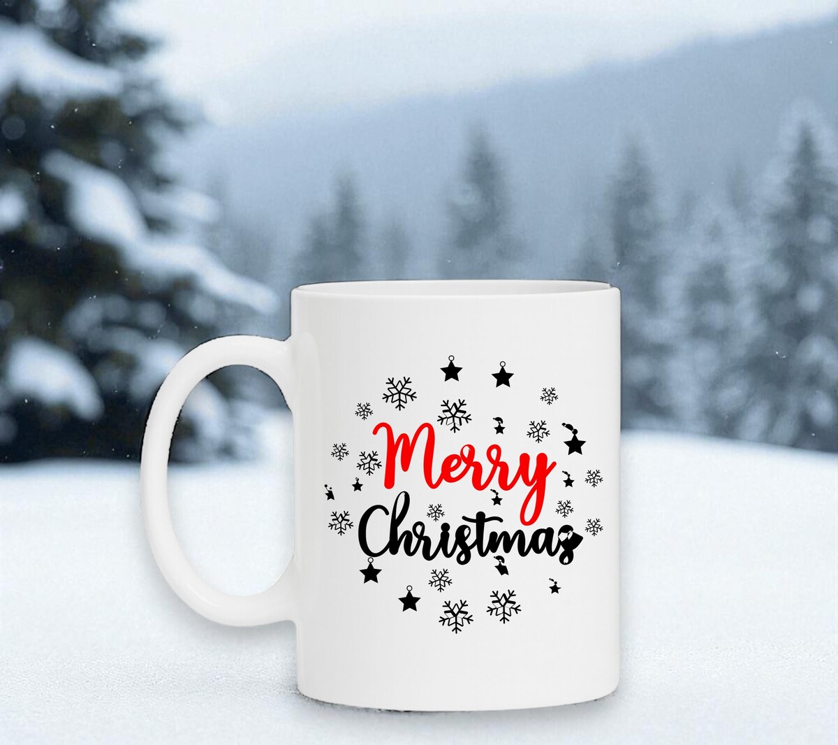 Koffiemok voor kerst Merry Christmas. De mok is vaatwasserbestendig, microgolfbestendig en heeft een hoogte van 96mm en een diameter van 80mm.