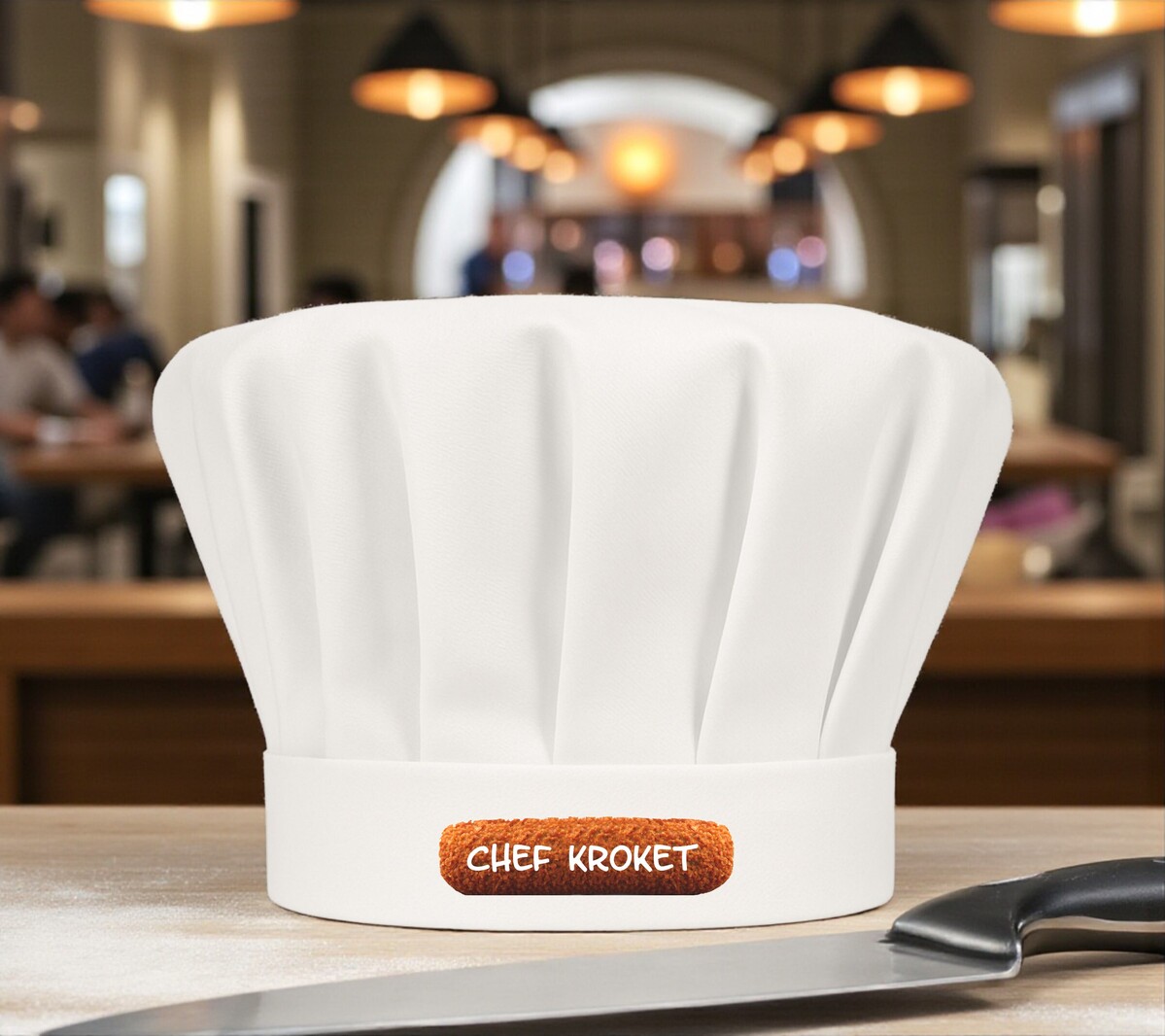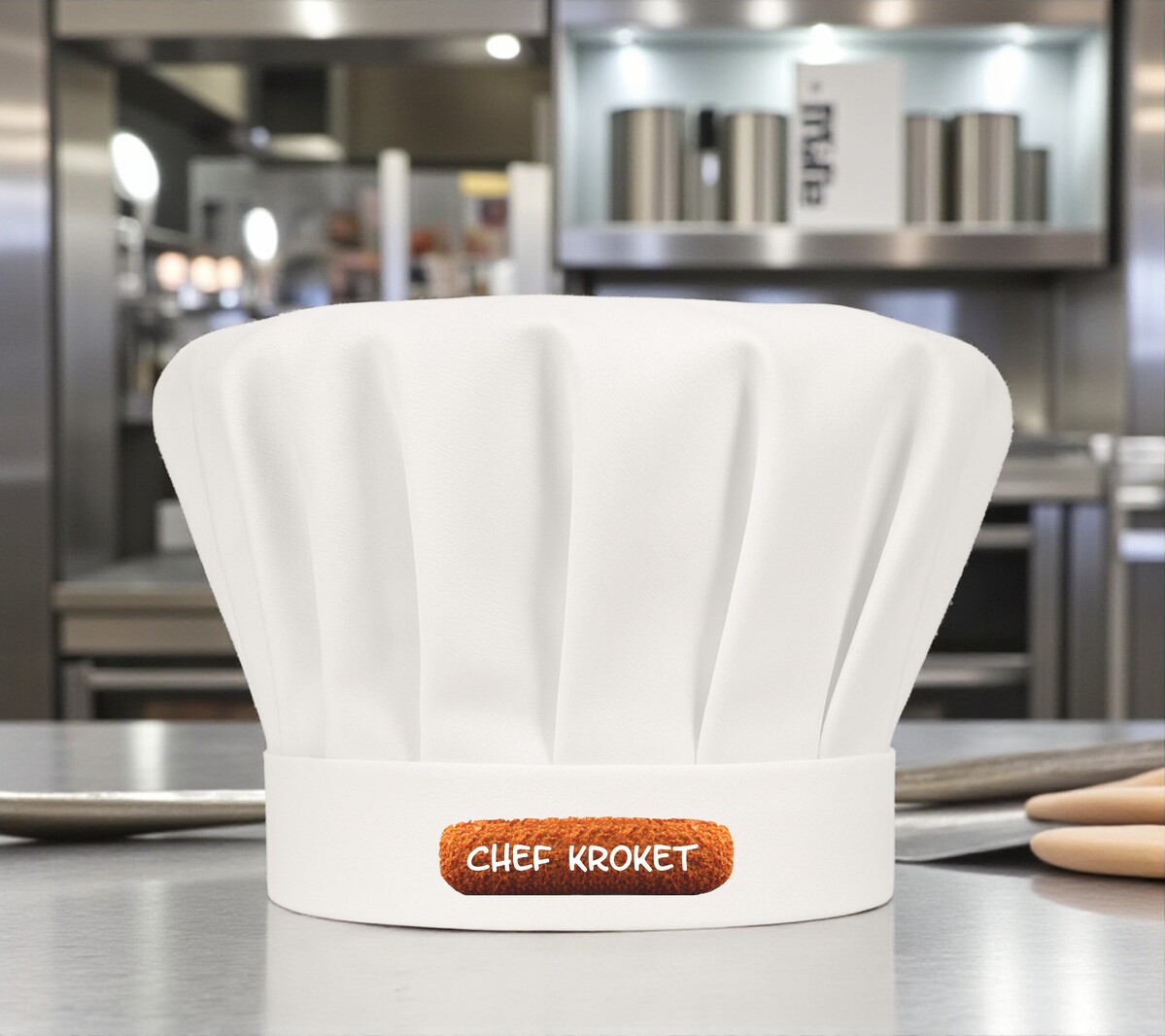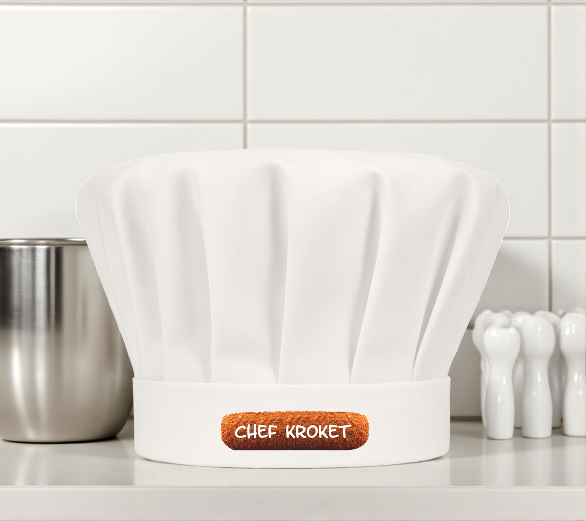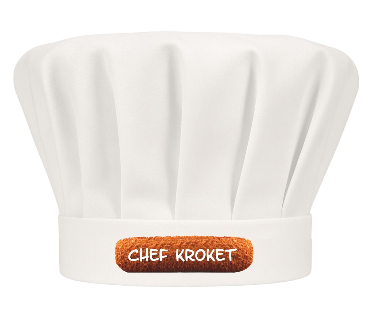 Met deze koksmuts laat je geen twijfel bestaan: jij bent de ware Chef Kroket. De knapperige bite, de smeuïge vulling – jij kent het geheim van de perfecte snack. Met de vrolijke opdruk en de tekst “Chef Kroket” zet je meteen de toon in de keuken of achter de frituur. Ideaal voor feestjes, barbecues of gewoon omdat je trots bent op je favoriete snack. Een luchtige knipoog die iedereen laat glimlachen.