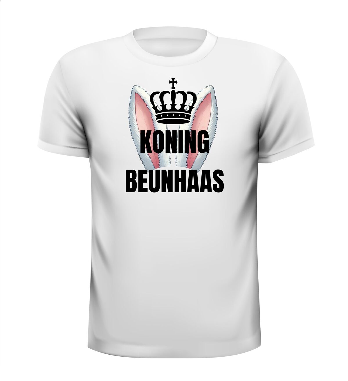 Een super leuk en grappig t-shirt met de tekst : koning beunhaas Met daarboven een koningskroon waar twee hazenoren uitkomen! Leuk om cadeau te geven aan een echte beunhaas.