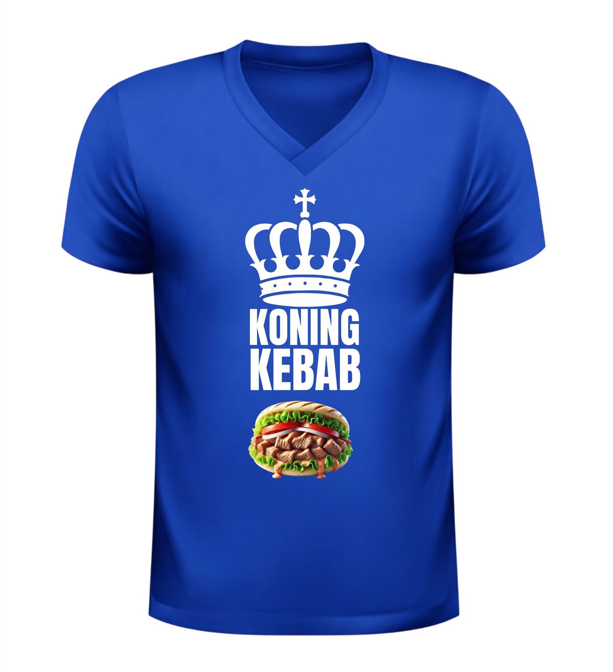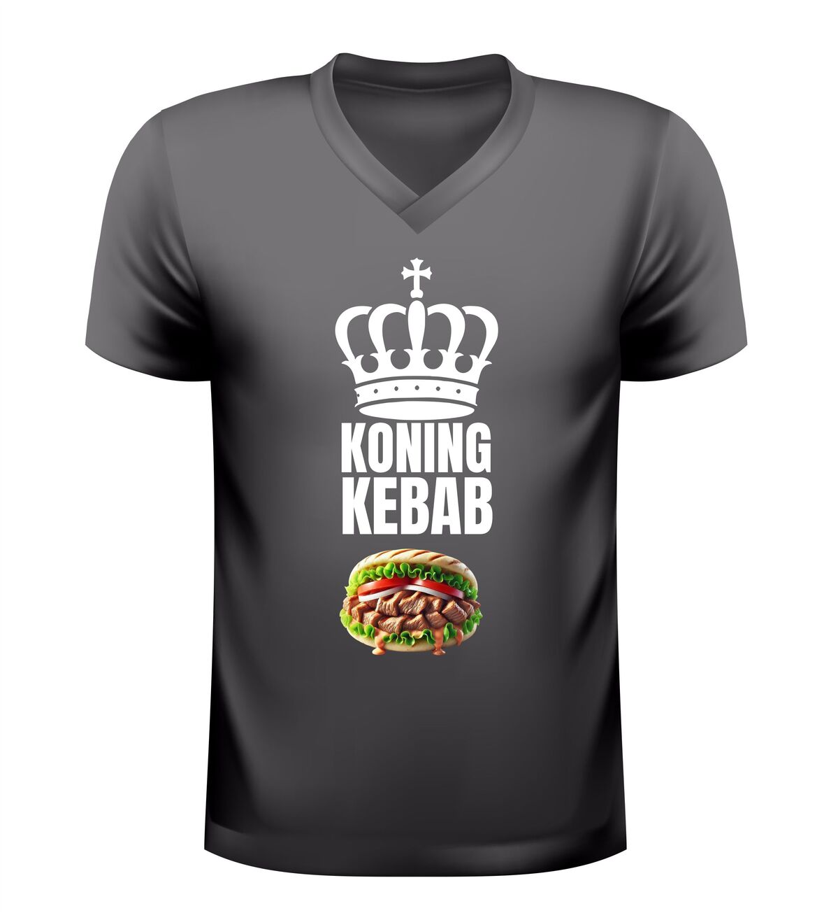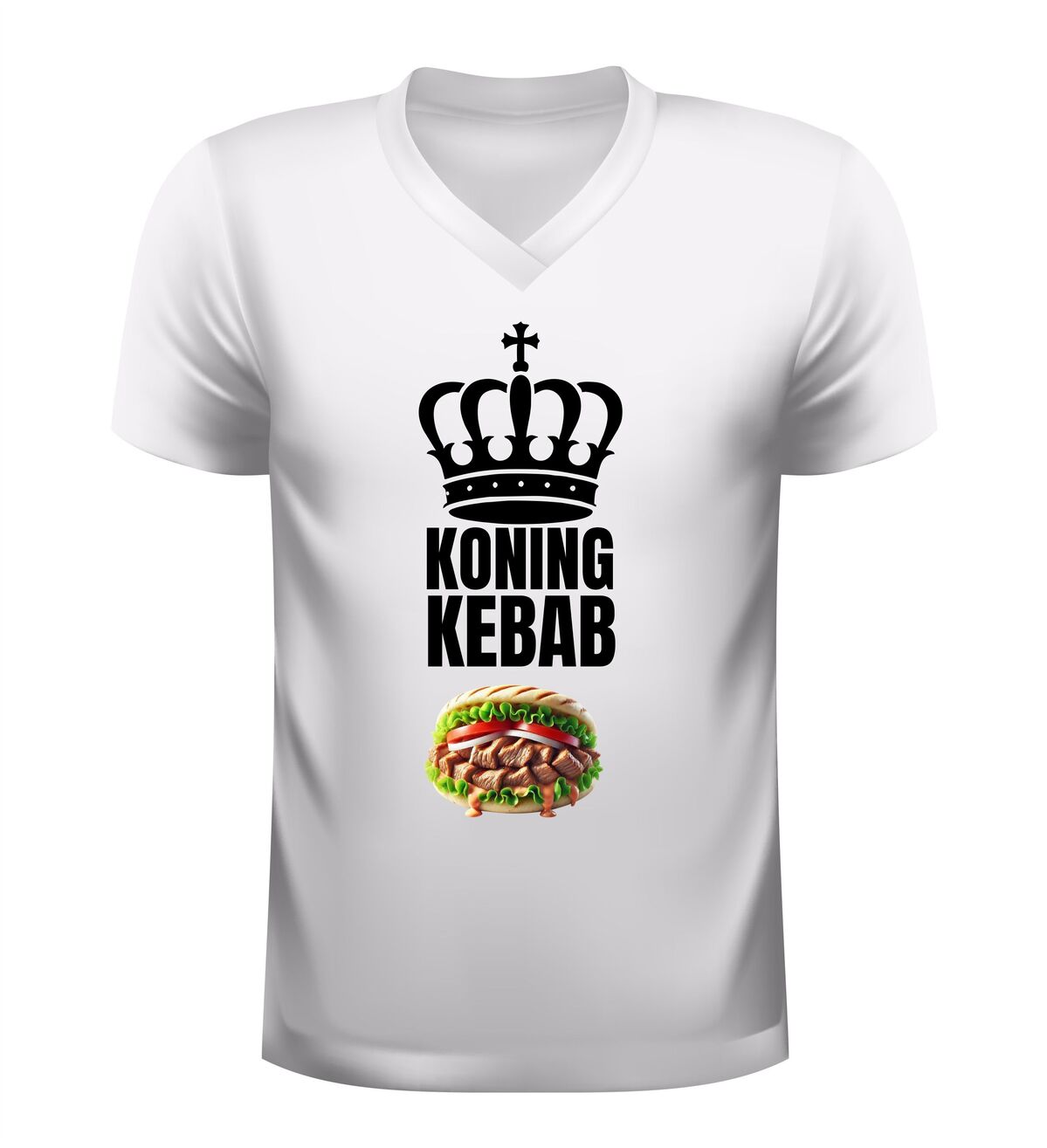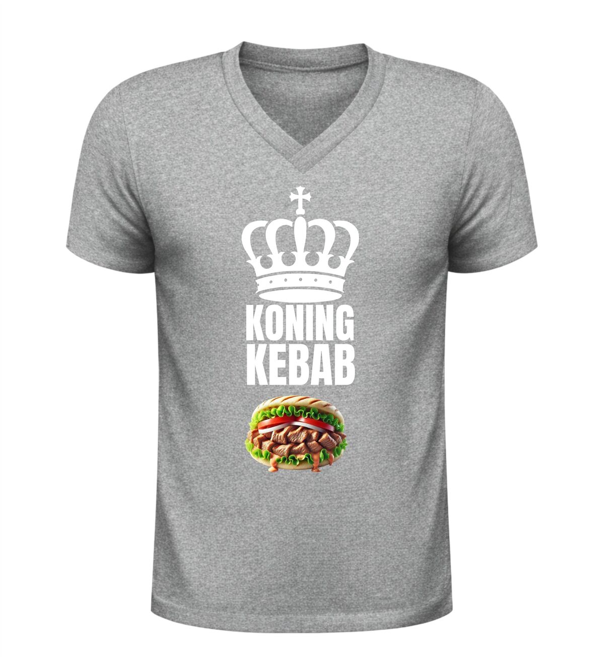 Laat zien wie de echte koning van de grill is met dit koning kebab heren V-hals t-shirt. Dit stoere en grappige heren shirt met de tekst koning kebab is perfect voor mannen die dol zijn op kebab, barbecue en streetfood. Ideaal om te dragen tijdens een festival, een avondje uit, op vakantie of gewoon als casual outfit.