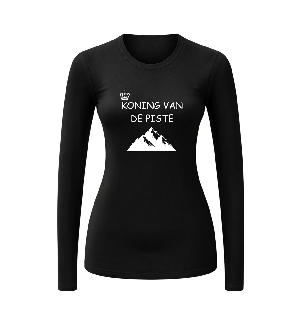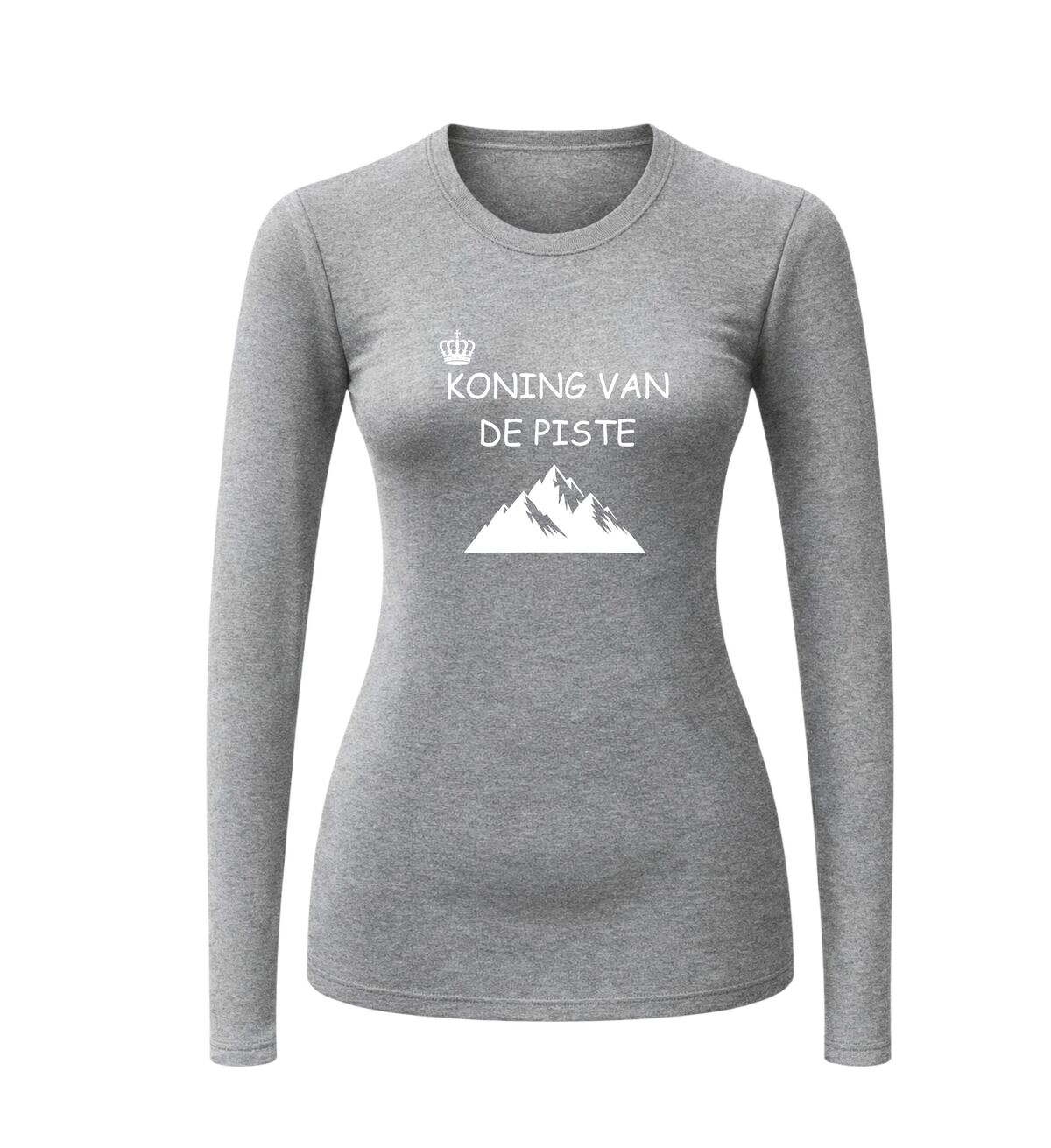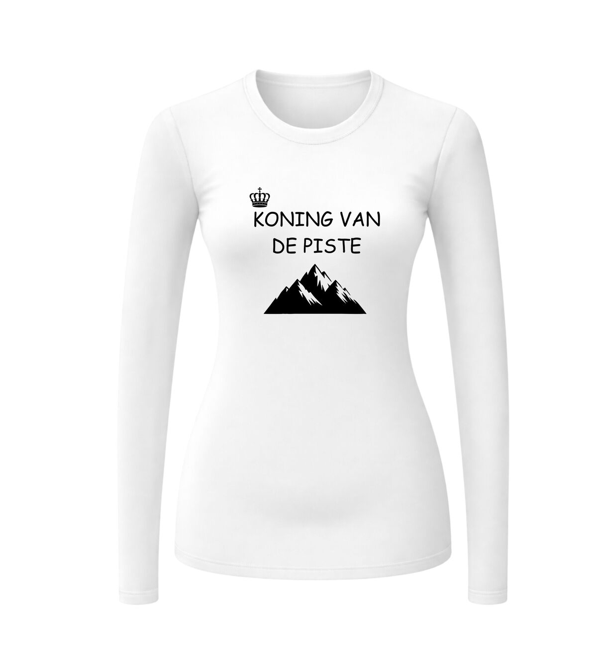 Koning van de piste apres ski shirtDit t-shirt mag niet ontbreken als jij op wintersport gaat. En helemaal als je ook gaat après-skiën dan is dit shirt er eentje waarmee je voor de dag kan komen en helemaal uit je plaat kan gaan!