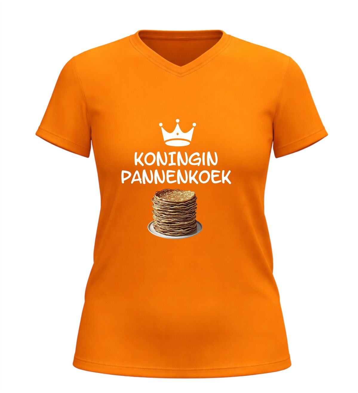 Het v-hals T-shirt met pannenkoeken afbeelding draagt comfortabel en is geschikt voor dagelijks gebruik. Of je het nu aantrekt tijdens een pannenkoekenontbijt, een gezellige brunch, een dagje uit of gewoon thuis, dit Koningin Pannenkoek shirt zorgt altijd voor een glimlach. Dankzij het tijdloze ontwerp en de vrouwelijke uitstraling is dit grappige v-hals shirt populair bij vrouwen die houden van humor, eten en opvallende prints.