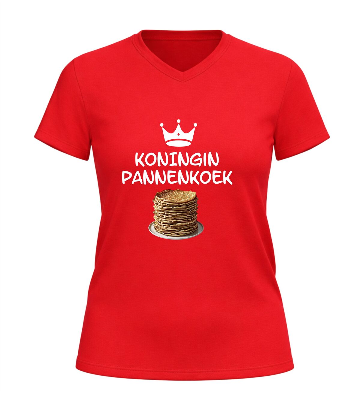 Ben je op zoek naar een V-hals shirt met pannenkoeken, een grappig koningin pannenkoek t-shirt of een uniek cadeau voor een pannenkoekenliefhebber, dan is dit shirt de perfecte keuze. Met dit shirt laat je stijlvol én met humor zien wie de echte koningin pannenkoek is