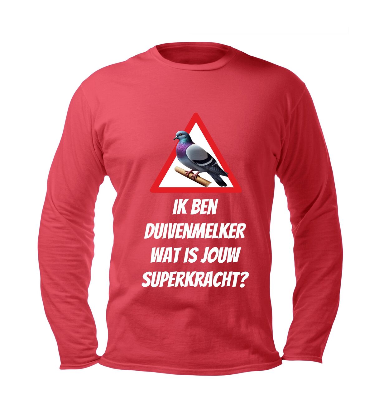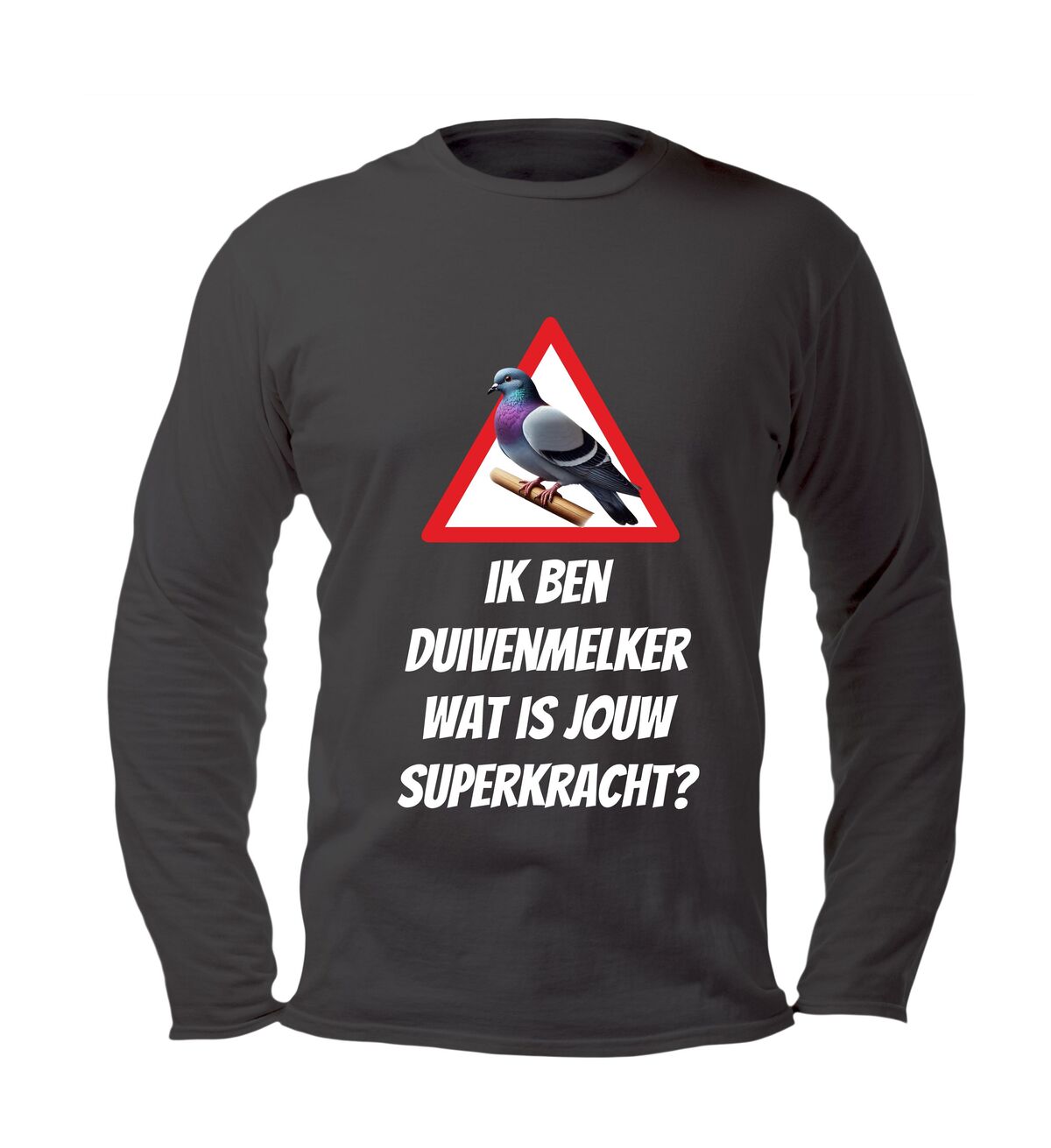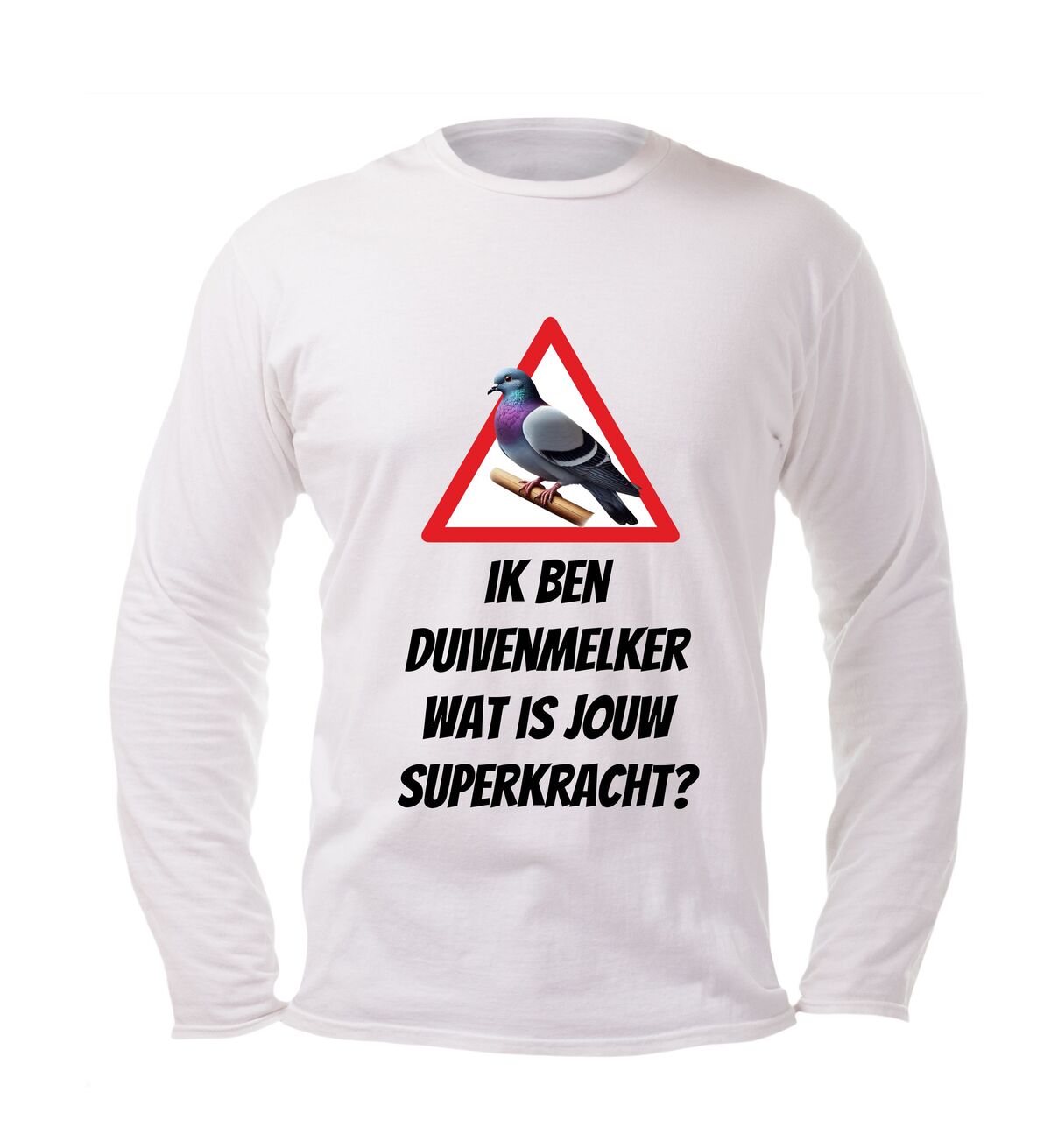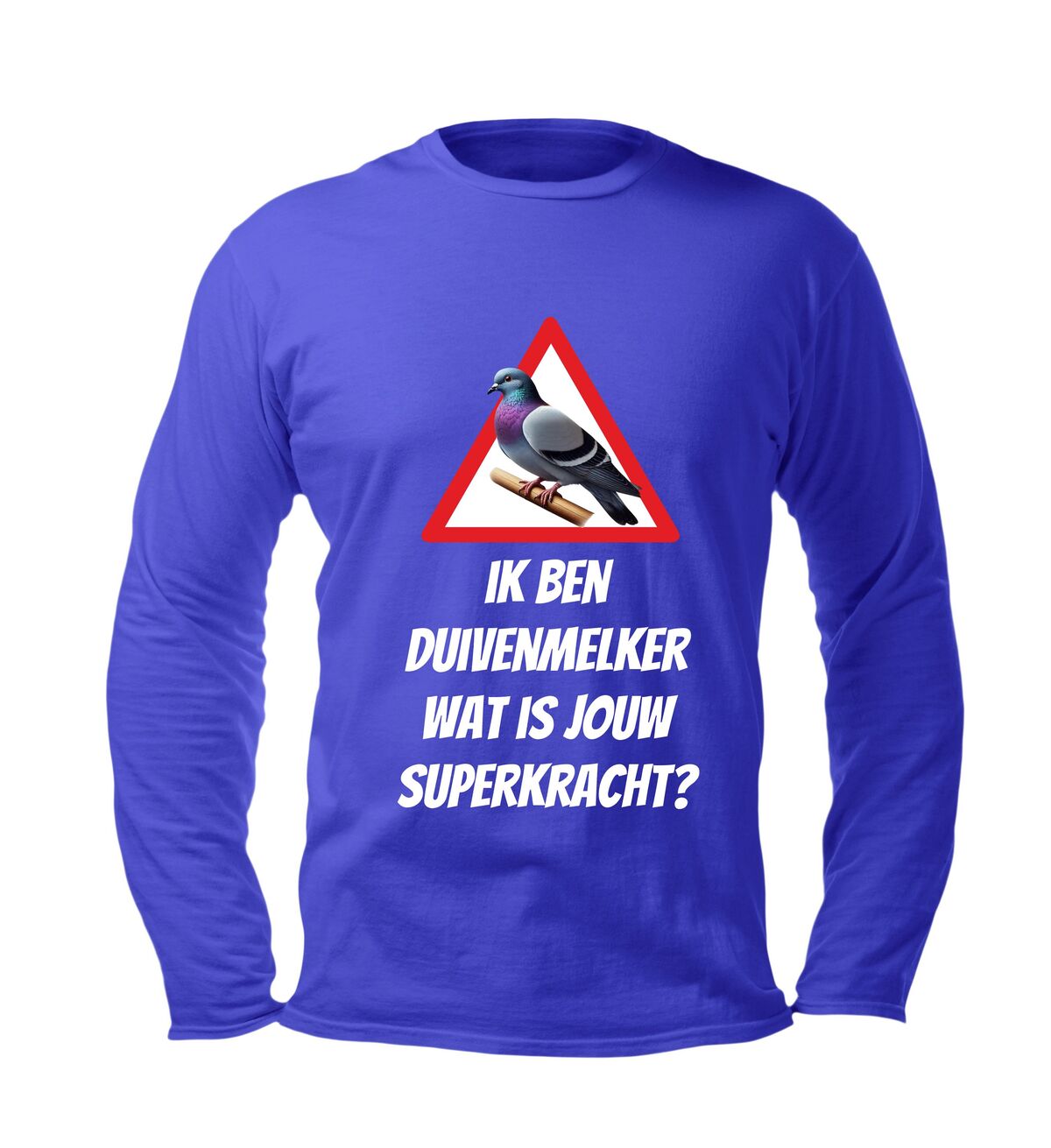 Laat met trots zien wat jouw echte superkracht is met dit lange mouwen shirt met de tekst ik ben duivenmelker, wat is jouw superkracht?” en een stijlvolle afbeelding van een duif. Dit unieke duivenmelker shirt is speciaal ontworpen voor liefhebbers van postduiven en de duivensport die hun passie graag uitdragen. Of je nu in het duivenhok staat, een wedstrijd bezoekt of gewoon casual gekleed wilt gaan, dit shirt combineert comfort met een knipoog naar jouw bijzondere hobby.