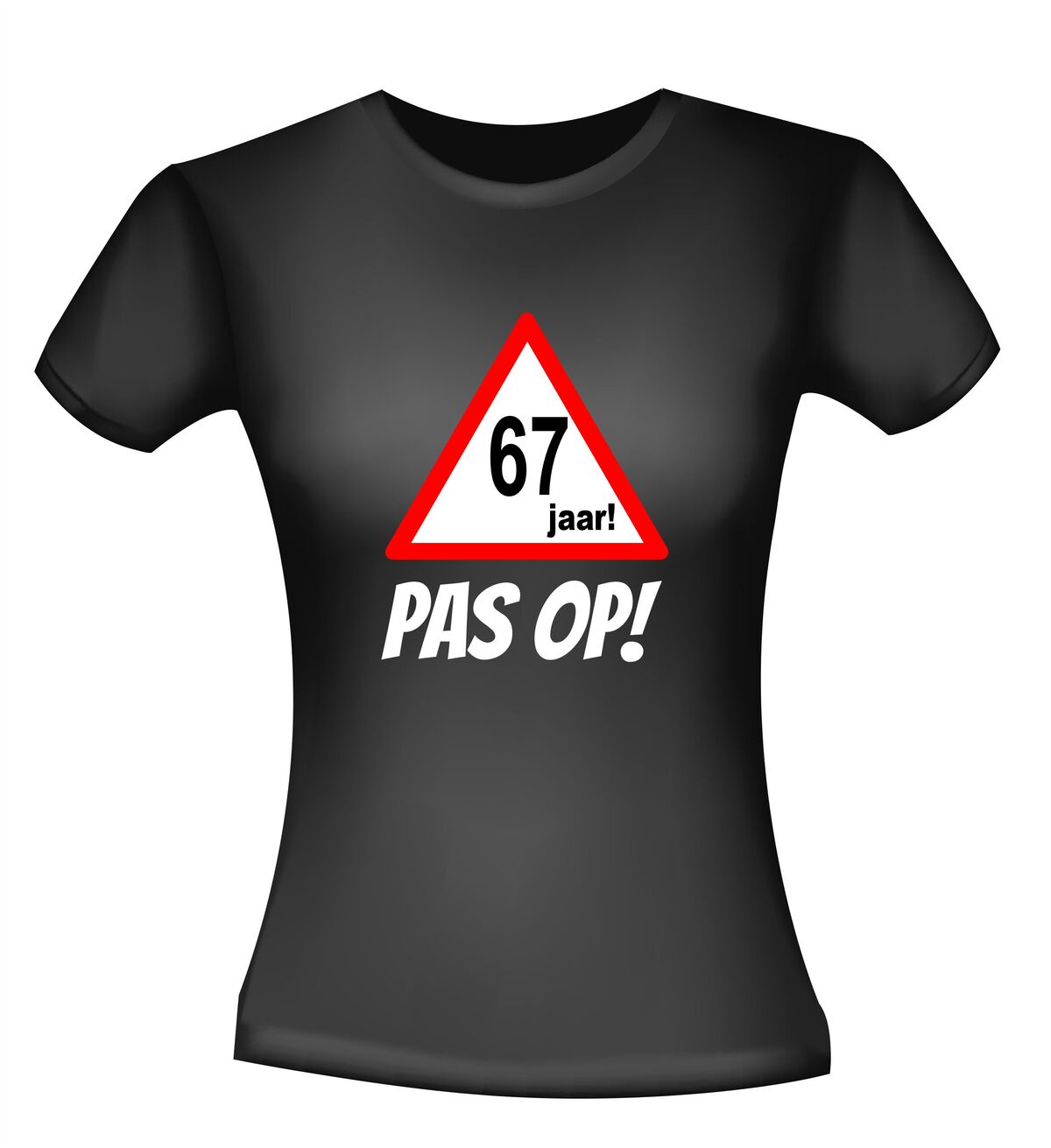 Dit leuke verjaardags shirt voor een 67e verjaardag heeft een leuke en grappige tekst. Pas op! 67 jaar. Wat is er nou leuker om de jarige job nog meer in het middelpunt van de belangstelling te zetten. Wanneer je op zoek bent na andere leeftijds shirts kijk gerust eens verder op onze fun shirt website, voor elke leeftijd of evenement hebben wij wel een t-shirt.