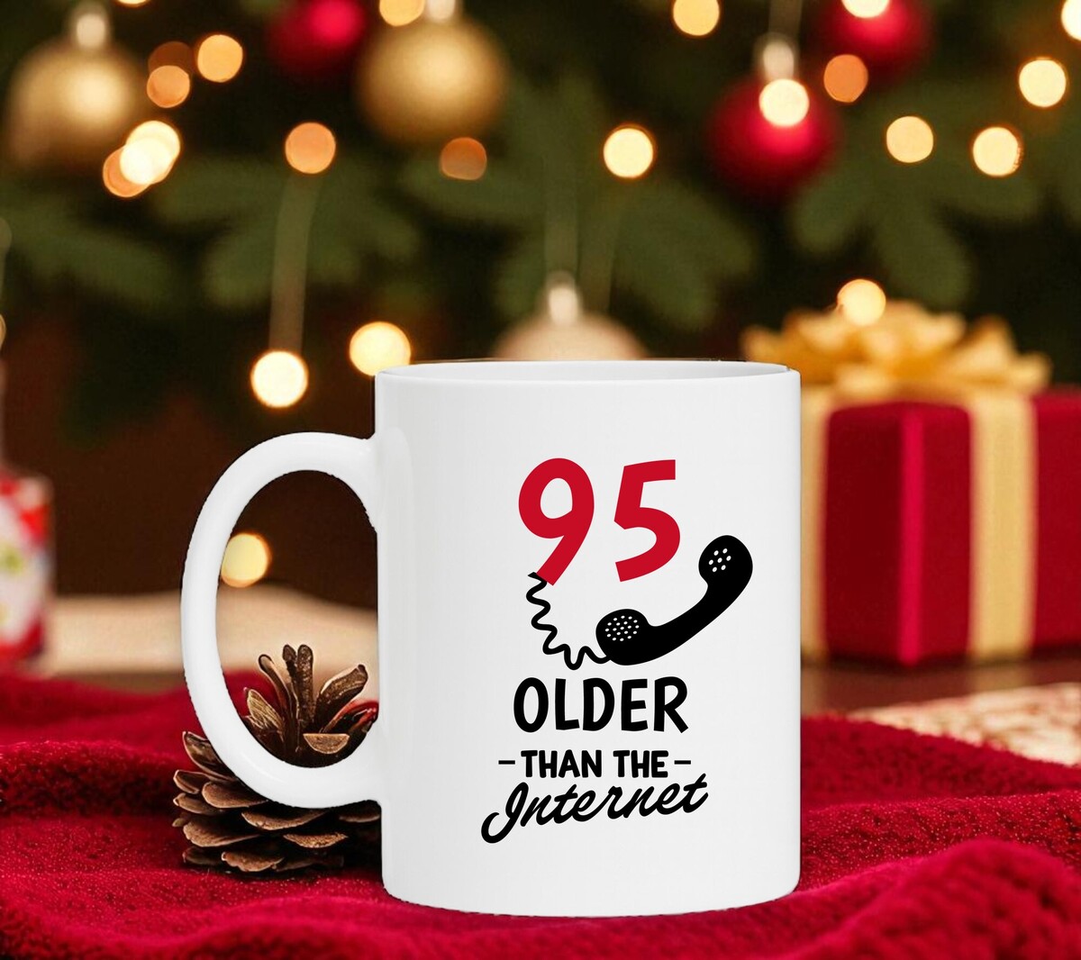 Een grappige leeftijd mok voor hem of haar die 95 jaar wordt en een stuk ouder is dan het internet! De witte koffie of thee mok is vaatwasserbestendig en magnetronbestendig. De mok heeft een hoogte van 96mm en een diameter van 80mm.