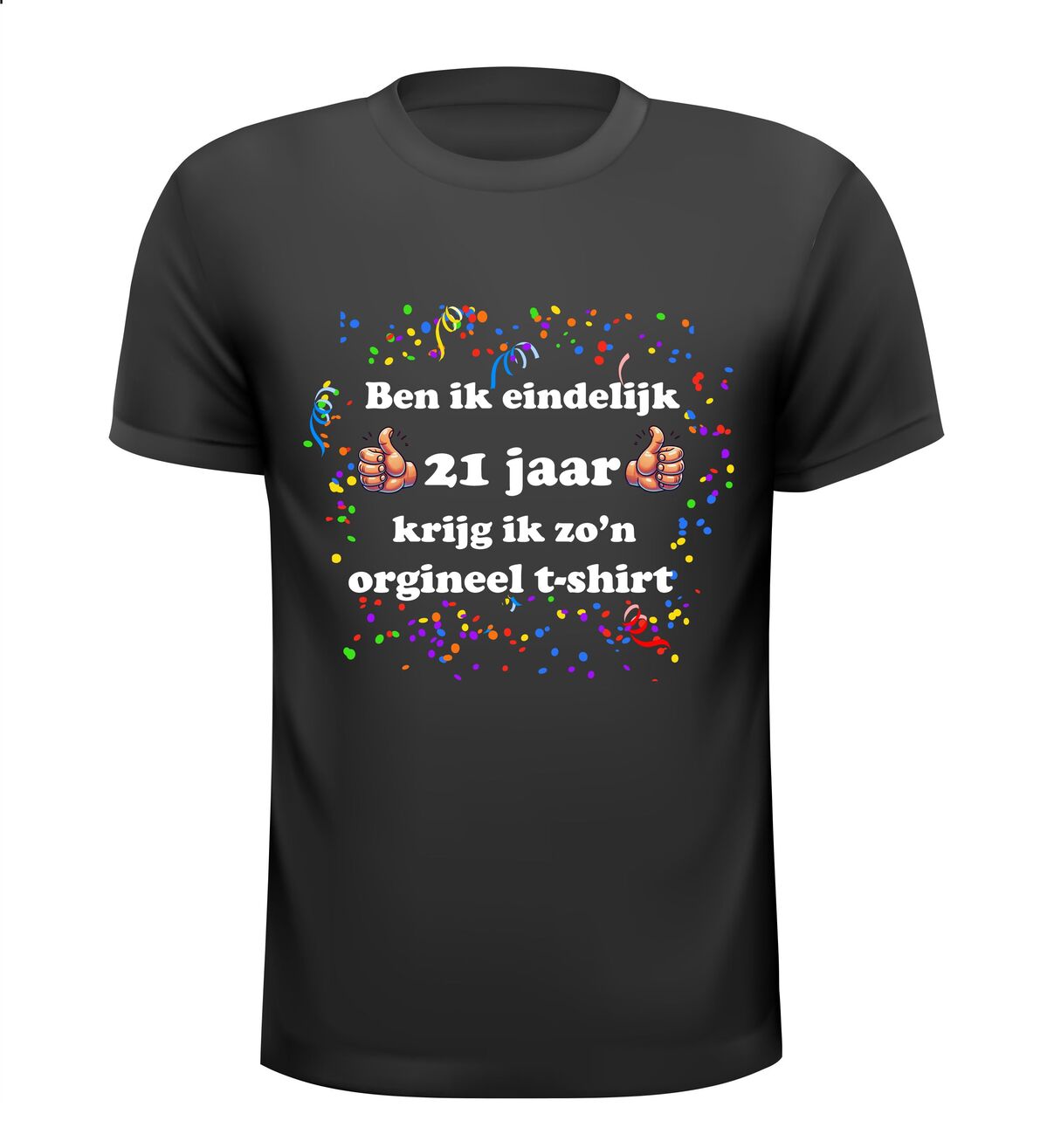 Op zoek naar een orgineel feestelijk shirt voor iemand die 21 jaar oud wordt? Dan is dit orginele verjaardag shirt voor een 21ste verjaardag zeker een aanrader.