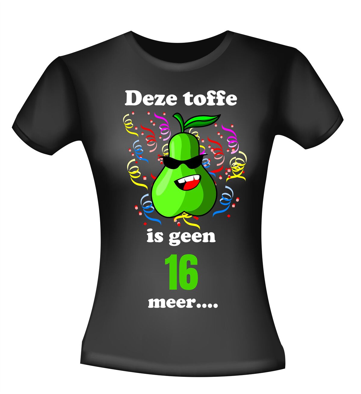 Leuk en orgineel full colour shirt met de tekst: deze toffe peer is geen 16 meer. Dit grappige fun shirt is erg leuk om cadeau te doen tijdens een 17e verjaardag. Zo zet je degene die 17 jaar geworden is extra in get middelpunt van de belangstelling.