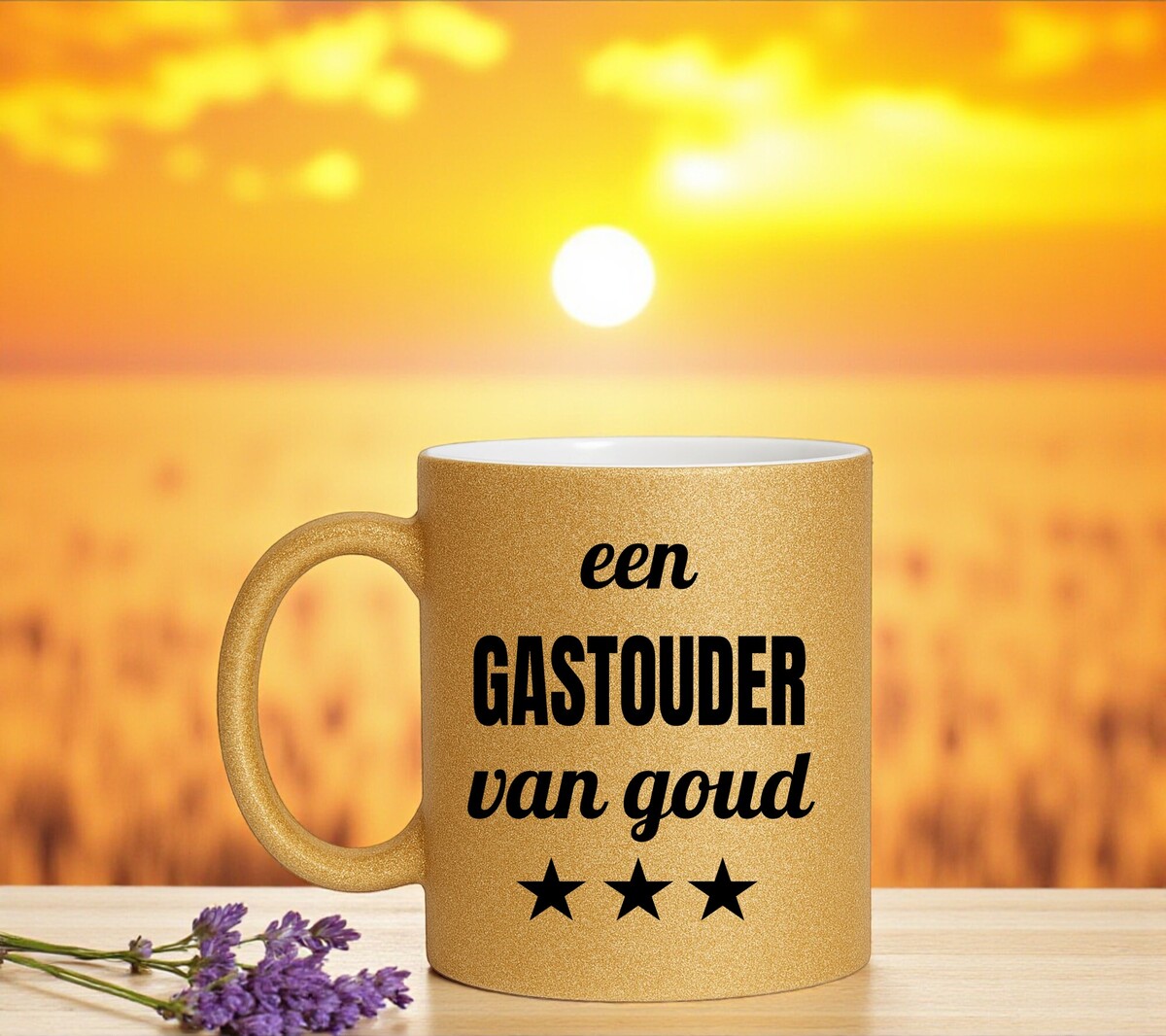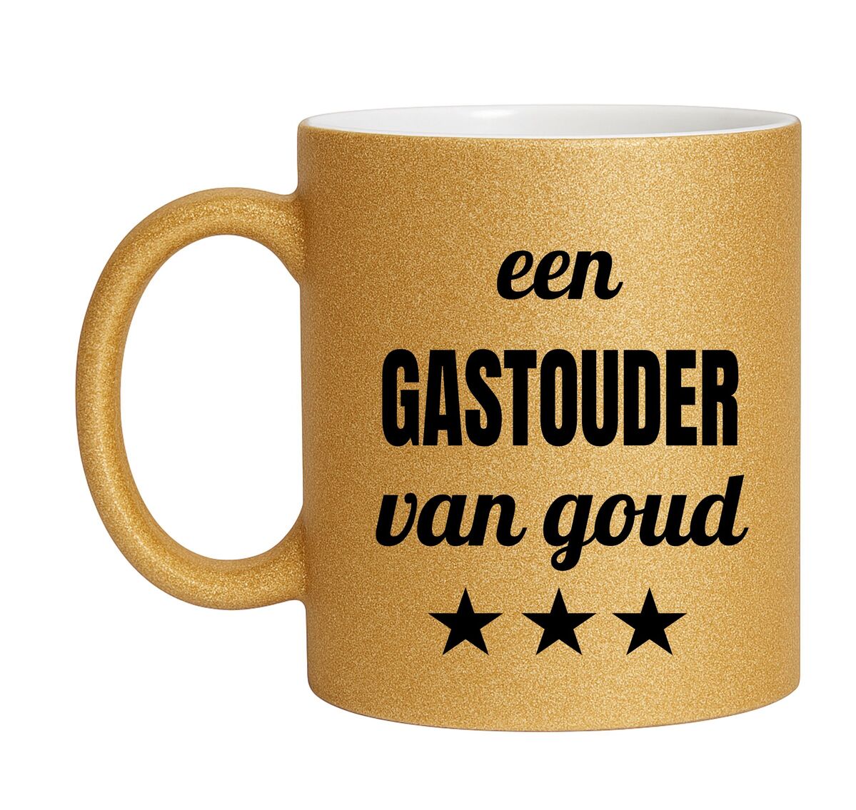 Wil je laten zien dat je een gastouder erg waardeert? dan is deze cadeau mok zeker een aanrader. Op deze mok staat de tekst: gastouder van goud.