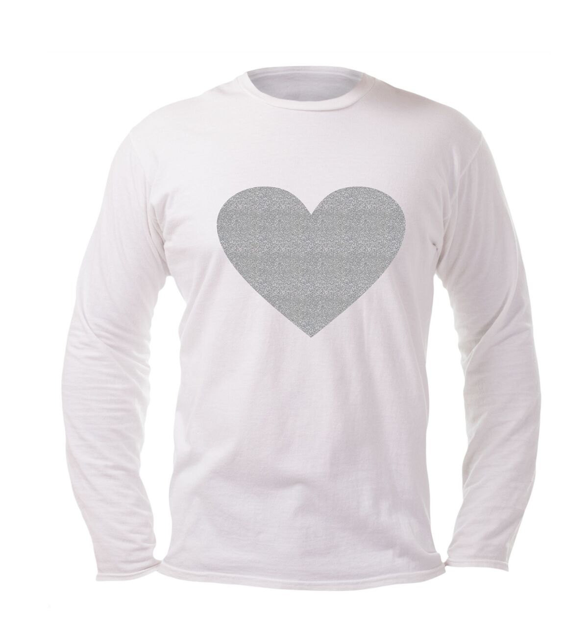 Laat jouw stijl én hart schitteren met deze prachtige longsleeve met glitterend zilveren hart. De sprankelende zilveren glans geeft de longsleeve een luxe, romantische uitstraling die perfect past bij momenten vol liefde. Of je nu een outfit zoekt voor een Valentijnsdate, een cosy dag samen, of een cadeau wilt geven dat écht vanuit het hart komt. Ddit item maakt elk moment bijzonder.