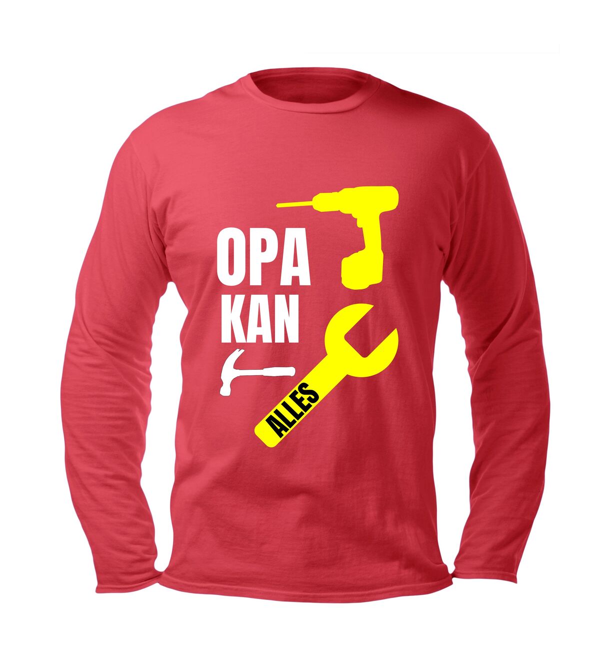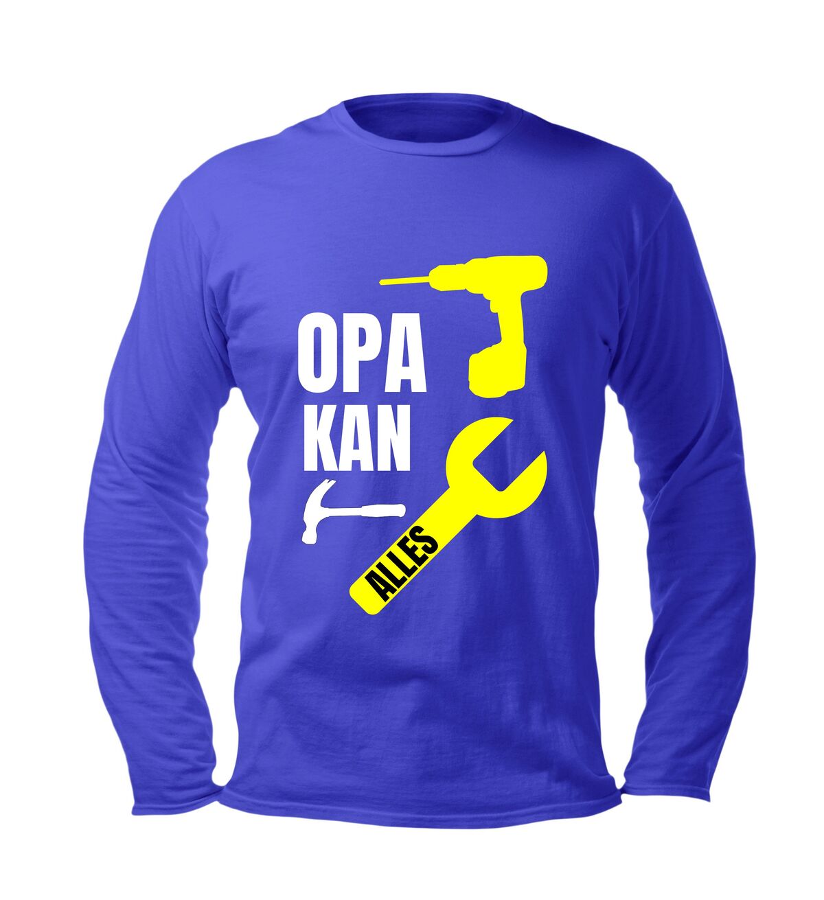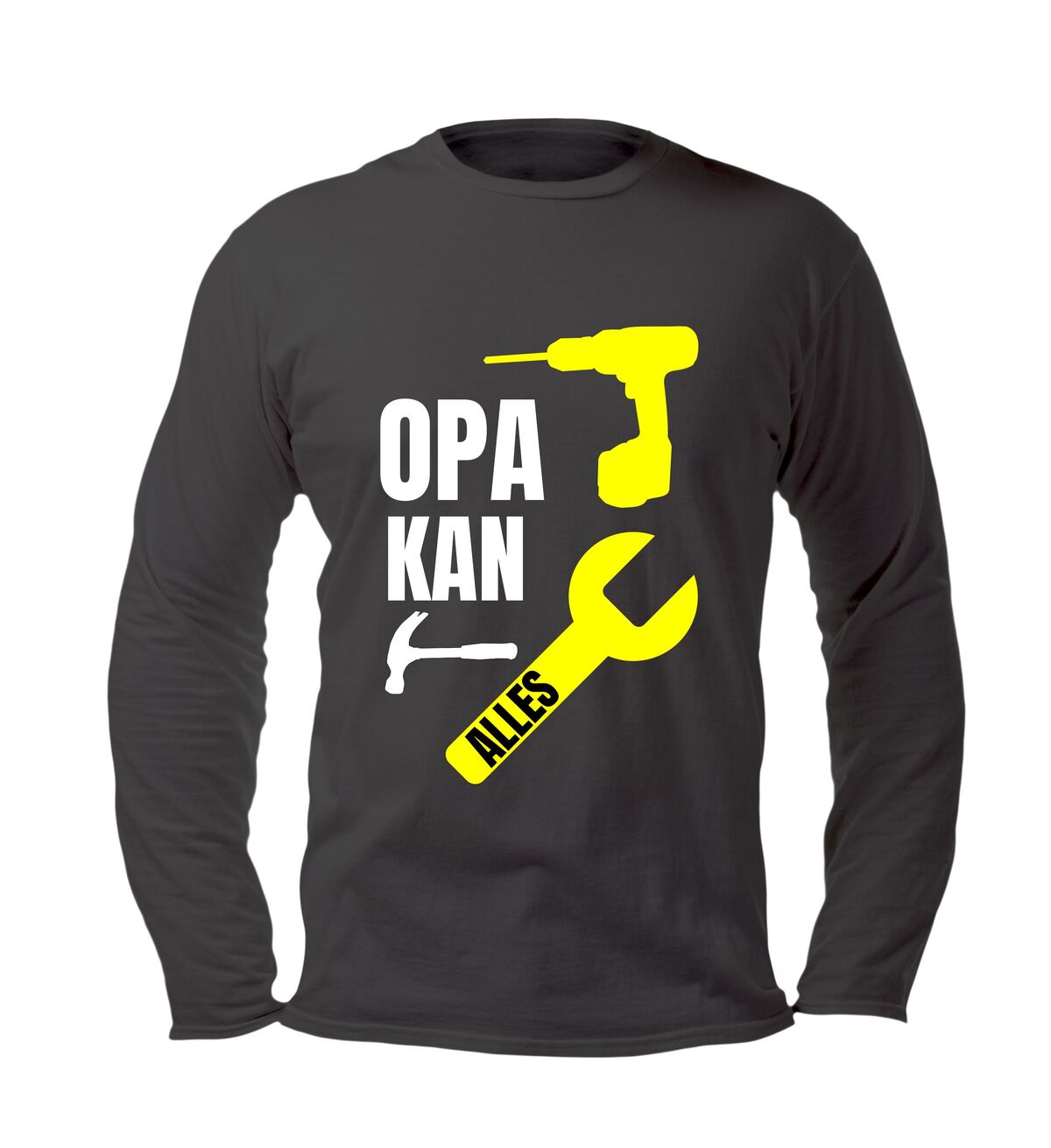 Met deze stoere unisex longsleeve met de tekst “Opa kan alles” en leuke gereedschap-afbeeldingen laat elke trotse opa zien wie de echte klusbaas in huis is.