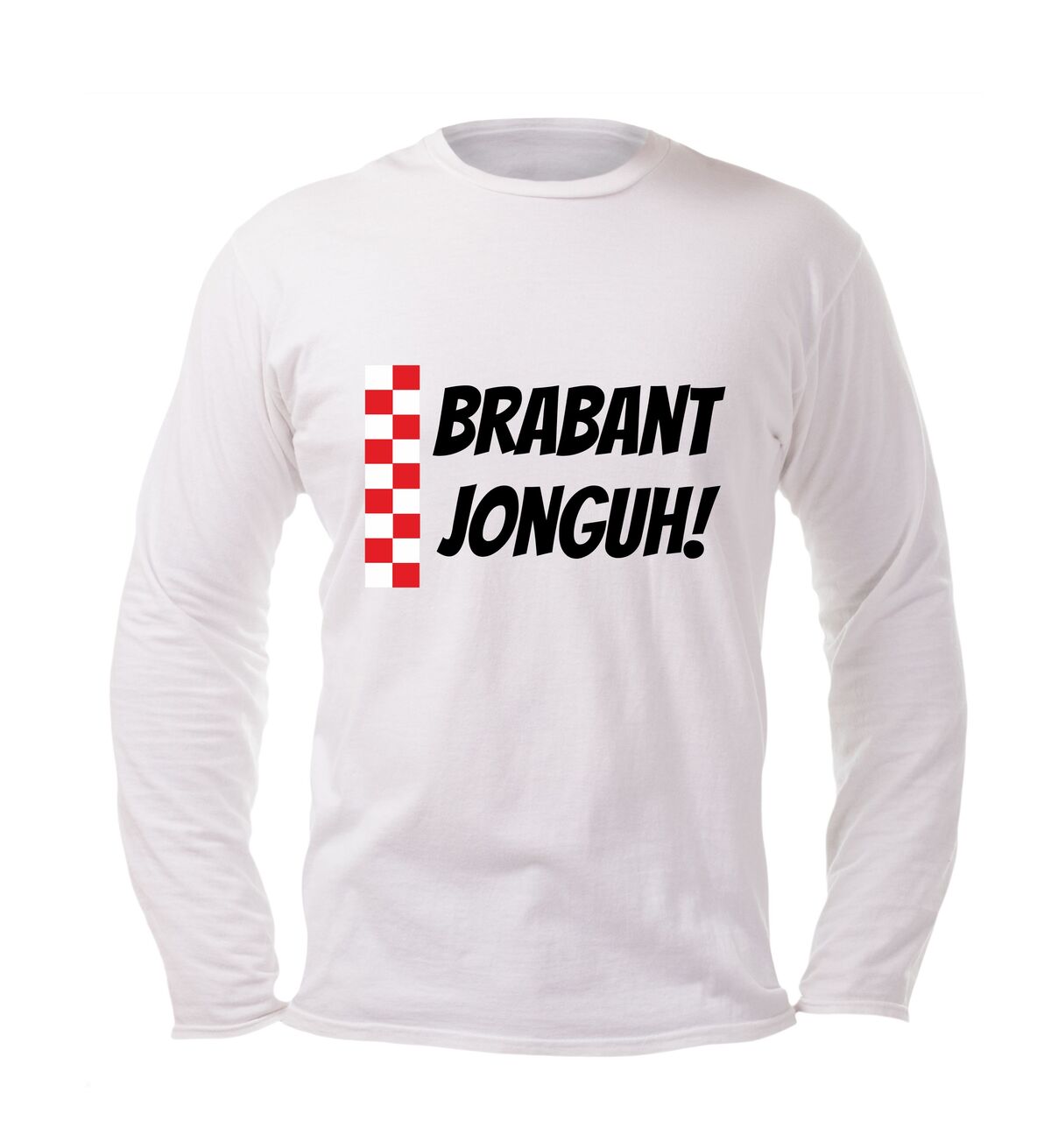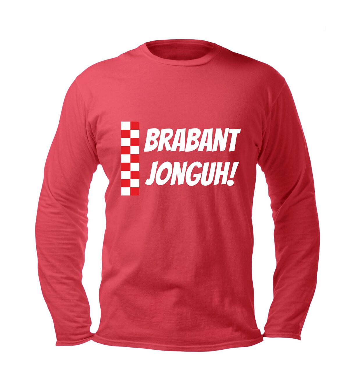 Ben jij geboren en getogen in het mooiste stukje van Nederland – of voel jij je gewoon 100% Brabander in hart en nieren? Dan is deze unisex longsleeve met de iconische rood-wit geblokte Brabant vlag en de stoere tekst “Brabant Jonguh” precies wat jij nodig hebt om jouw liefde voor Brabant met volle trots te laten zien.