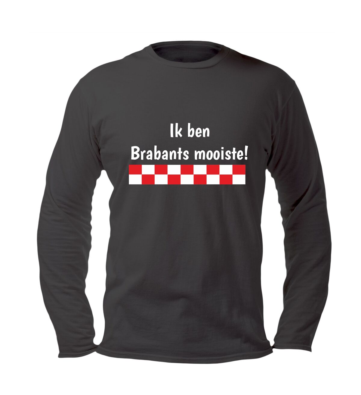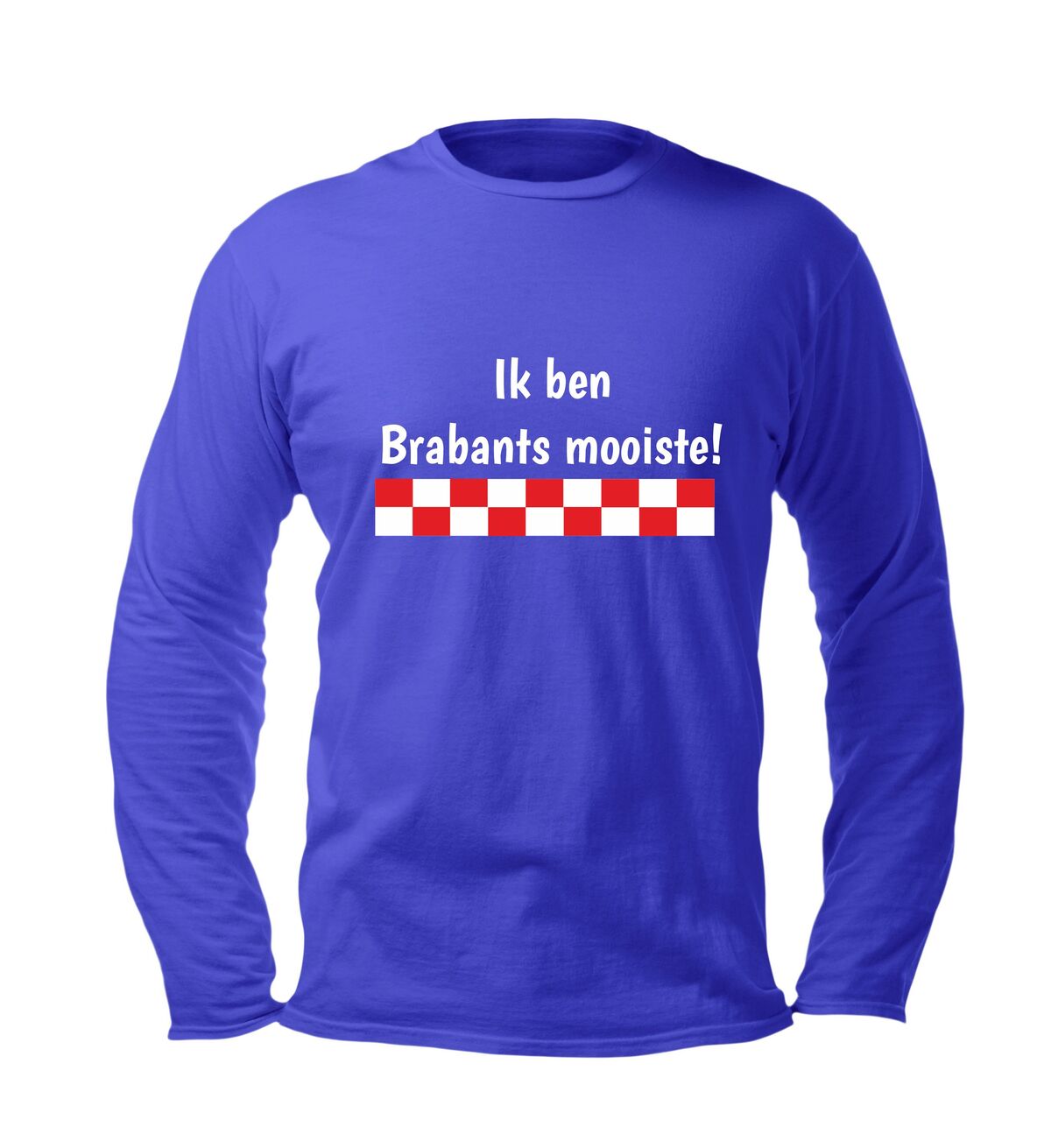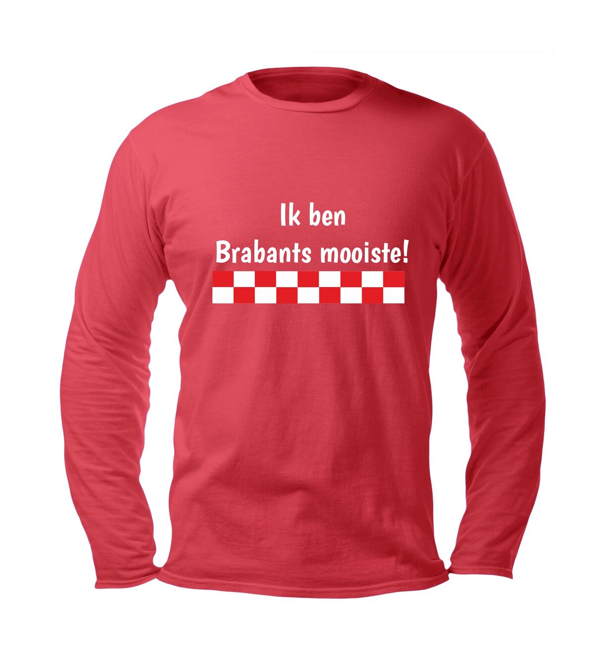 Trek de aandacht, laat zien waar je vandaan komt en straal trots uit met deze unieke longsleeve! Onze Brabantse longsleeve met rood-wit geblokte opdruk en de tekst “Ik ben Brabants mooiste” is méér dan zomaar een shirt – het is een statement, een gevoel, een eerbetoon aan de mooiste provincie van Nederland.