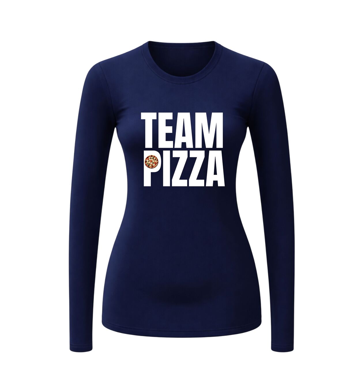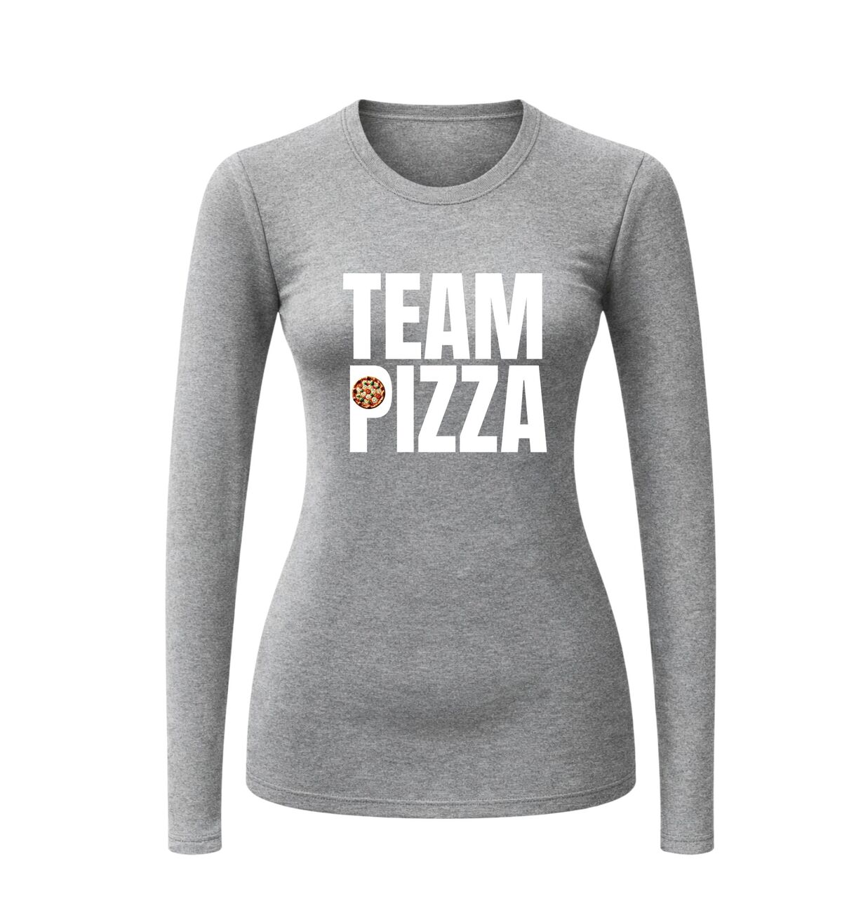 Ben jij diegene die altijd als eerste “Pizza!” roept wanneer er gevraagd wordt wat jullie gaan eten? Dan is deze unisex longsleeve “Team Pizza” helemaal voor jou. Met een speelse pizza-afbeelding en de duidelijke boodschap op de borst laat je aan iedereen zien waar jouw loyaliteit ligt: bij de enige echte ultieme klassieker.