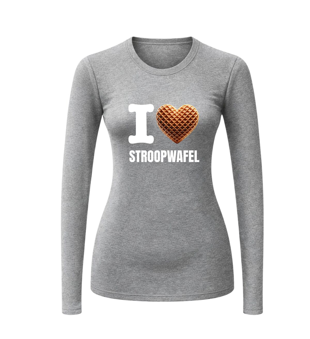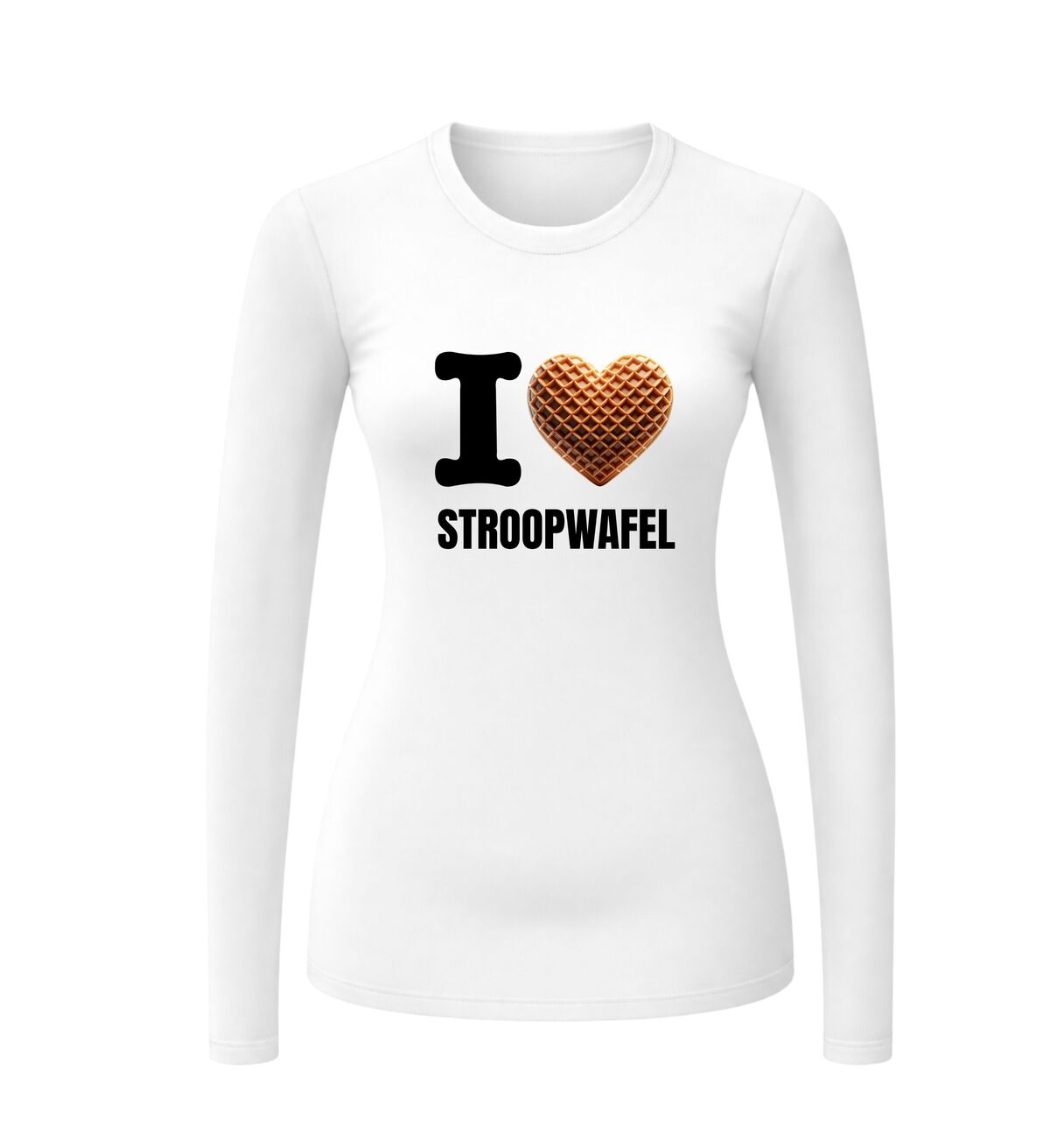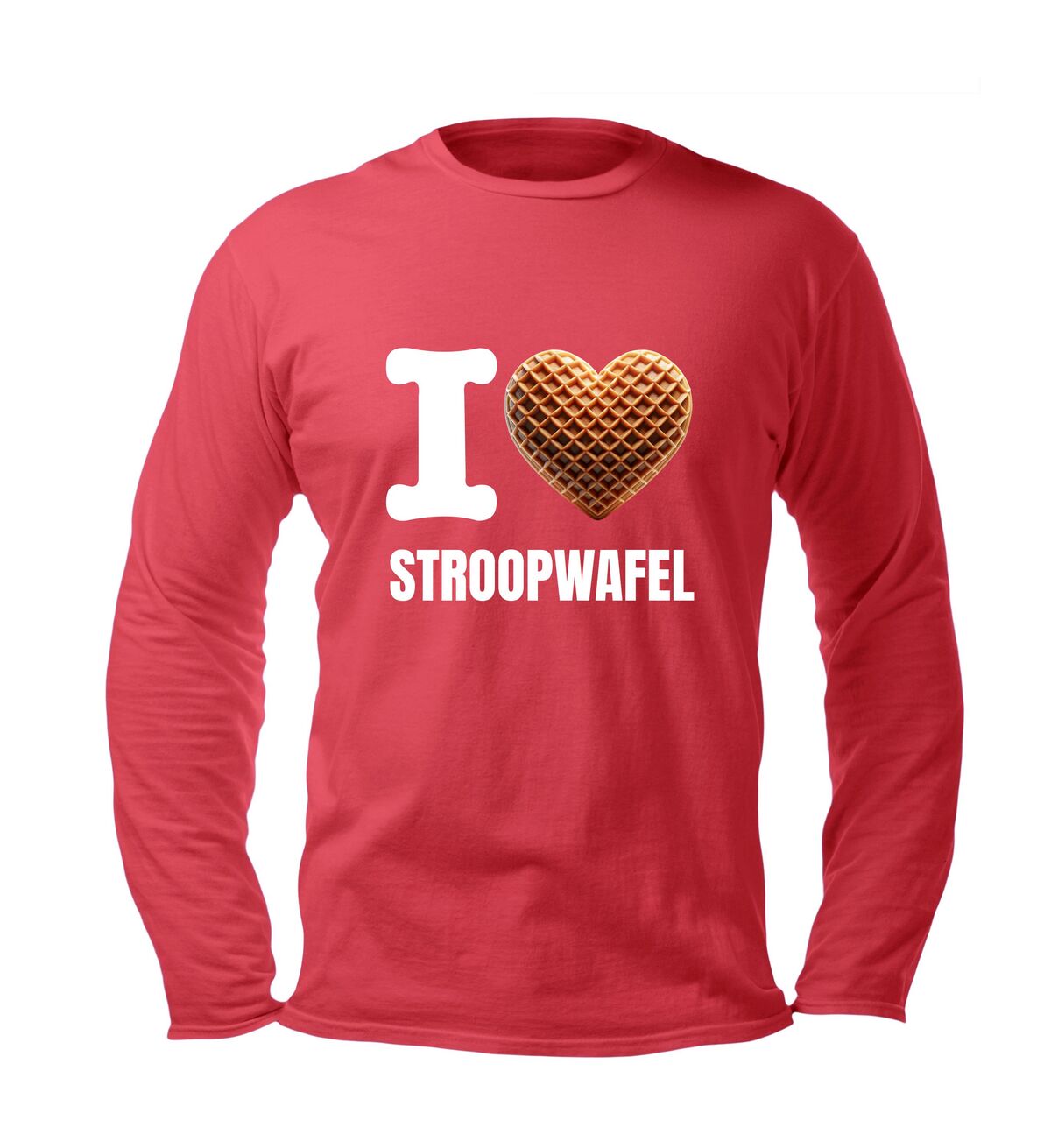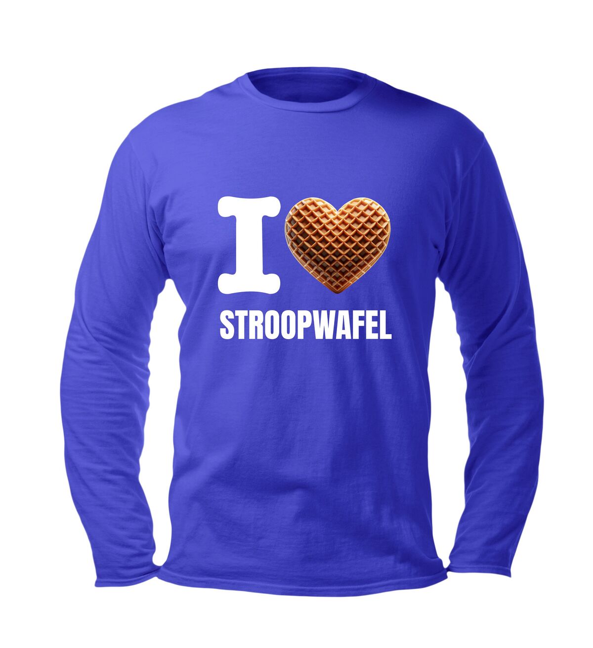 Met deze unisex longsleeve laat je niet alleen je gevoel voor mode zien, maar óók je liefde voor de lekkerste Nederlandse traktatie: de stroopwafel! Het klassieke I love Stroopwafel-design krijgt een originele twist, want het hart is vervangen door een heerlijke stroopwafel-afbeelding. Zo maak je meteen duidelijk waar jouw hart écht sneller van gaat kloppen.