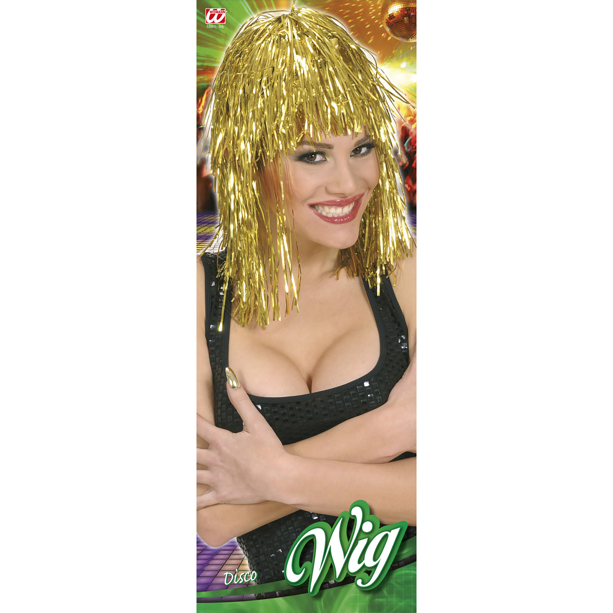 Ben je op zoek na een goedkope maar geheel in stijl gouden disco pruik?. Dan is dit zeker een aanrader. Deze discopruik in het goud is een van de vele disco pruiken die wij in ons assortiment hebben. geschikt voor volwassenen.