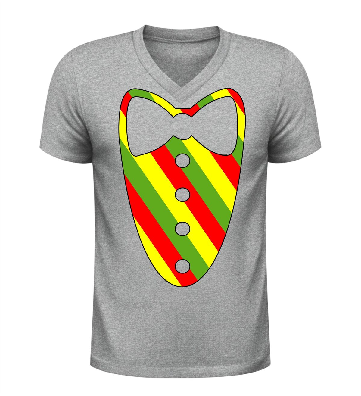 Dit V-hals T-shirt met smoking opdruk in rood, geel en groen is dé perfecte carnavalsoutfit voor iedereen die Maastricht en carnaval in het hart draagt. De klassieke smokingprint krijgt een feestelijke twist door de herkenbare Maastrichtse carnavalskleuren, waardoor het shirt meteen opvalt in de stad, in de kroeg en op straat tijdens de vastelaovend.