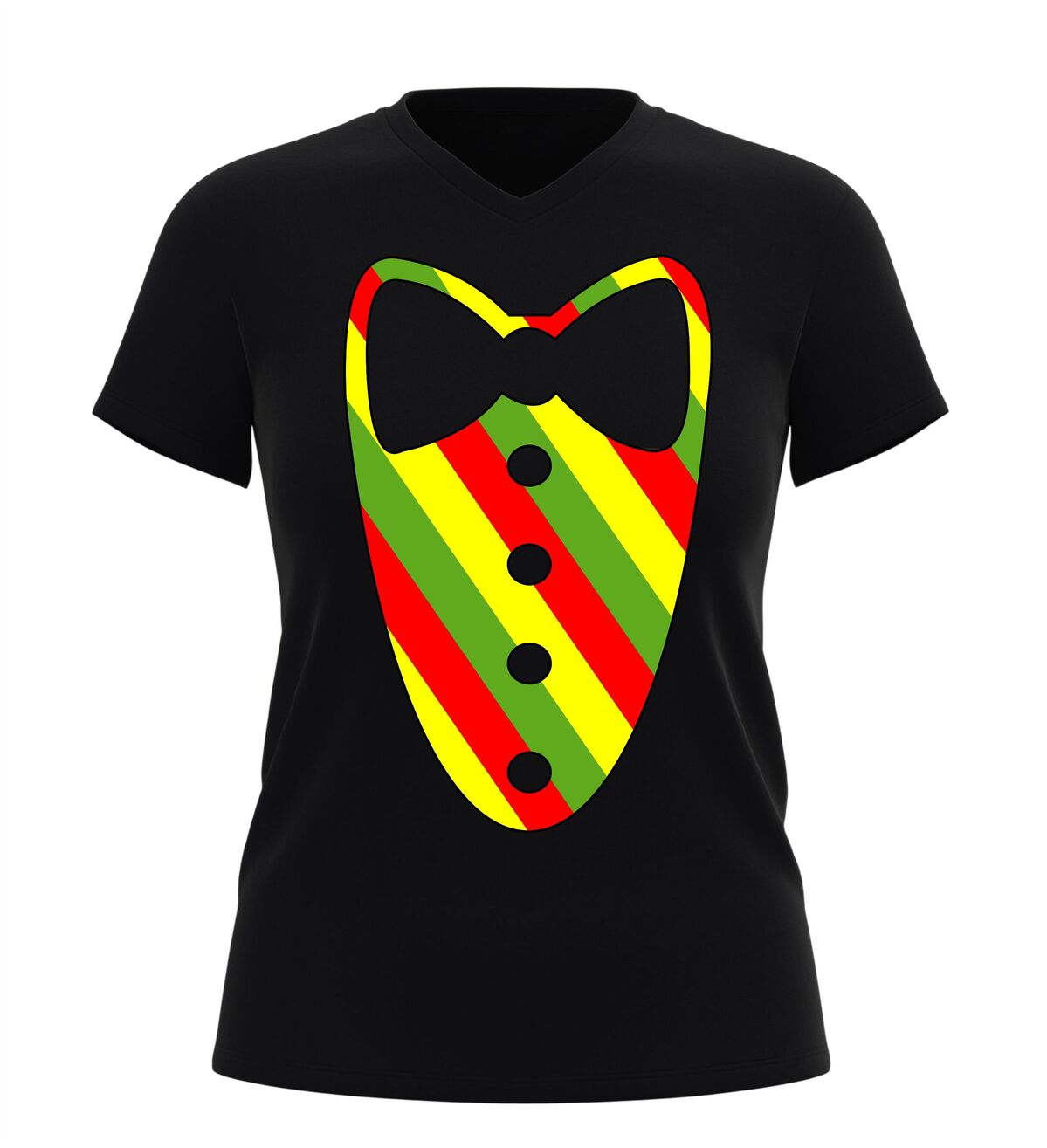 Dit V-hals T-shirt met Maastricht kleuren is ideaal voor carnaval, vastelaovend, carnavalszondag, -maandag en -dinsdag, maar ook perfect voor themafeesten en Limburgse feestavonden. De smokingprint maakt het shirt feestelijk, terwijl de kleuren direct verbonden zijn met Maastricht en haar rijke carnavalscultuur.