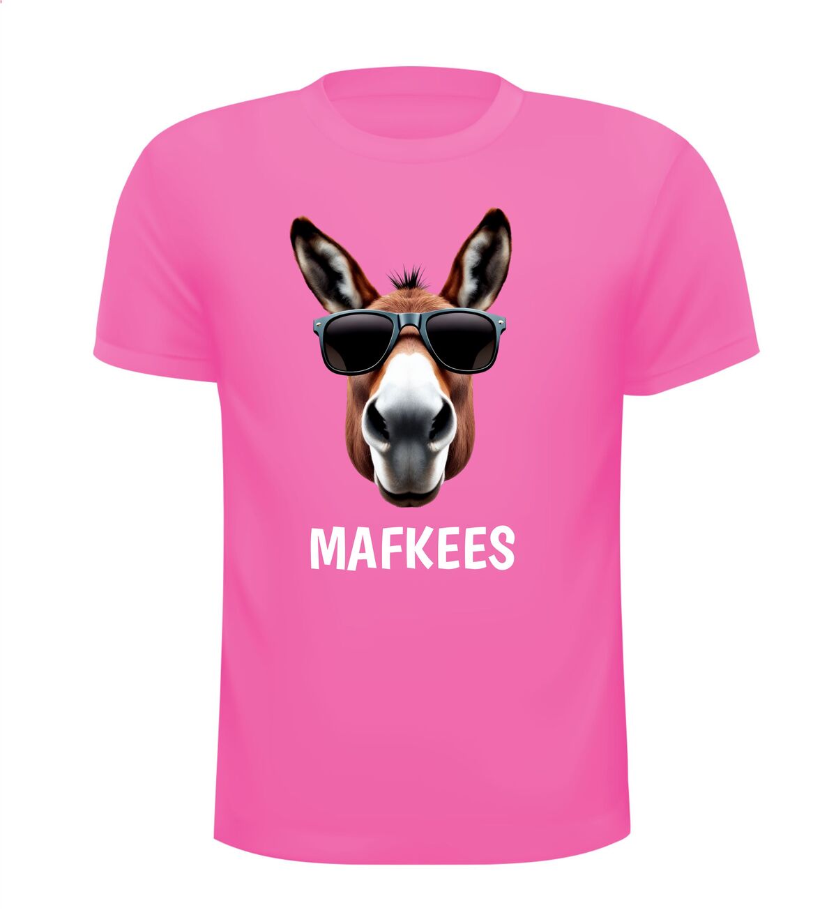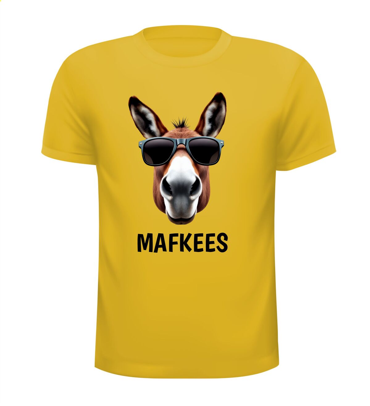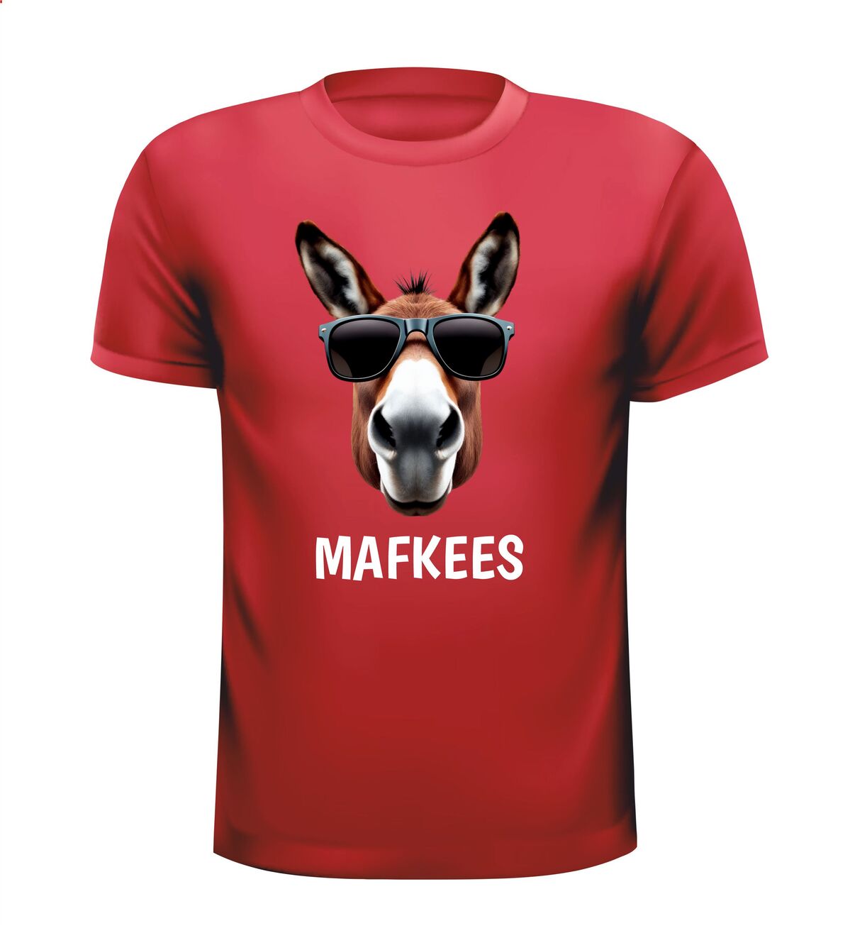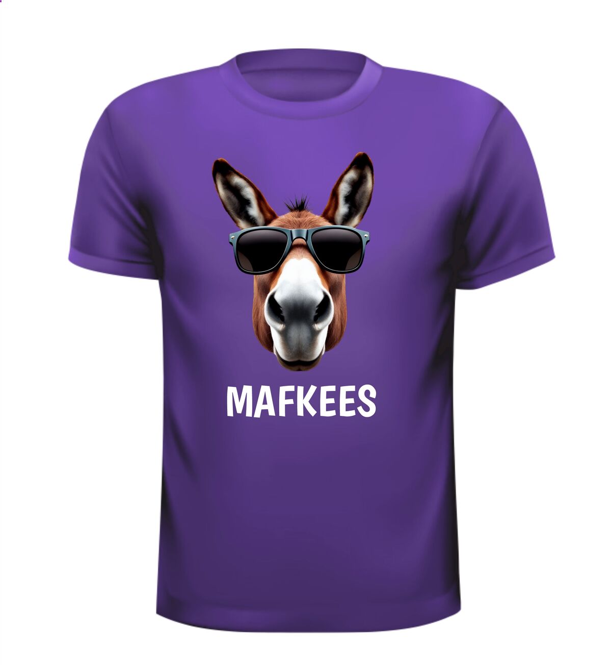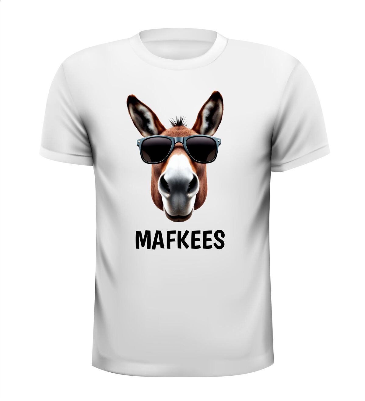 Dankzij de hoogwaardige bedrukking blijft de afbeelding van de ezel met zonnebril mooi en scherp, ook na meerdere wasbeurten. Ben je op zoek naar een origineel cadeau, een grappig statement shirt of een uniek Mafkees T-shirt met ezel print? Dan is dit design een echte blikvanger die gegarandeerd reacties oplevert en perfect past binnen elke humoristische kledingcollectie.