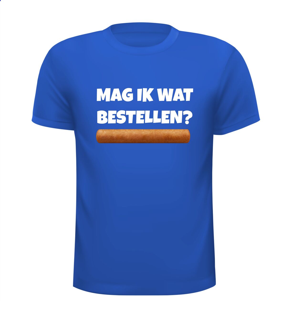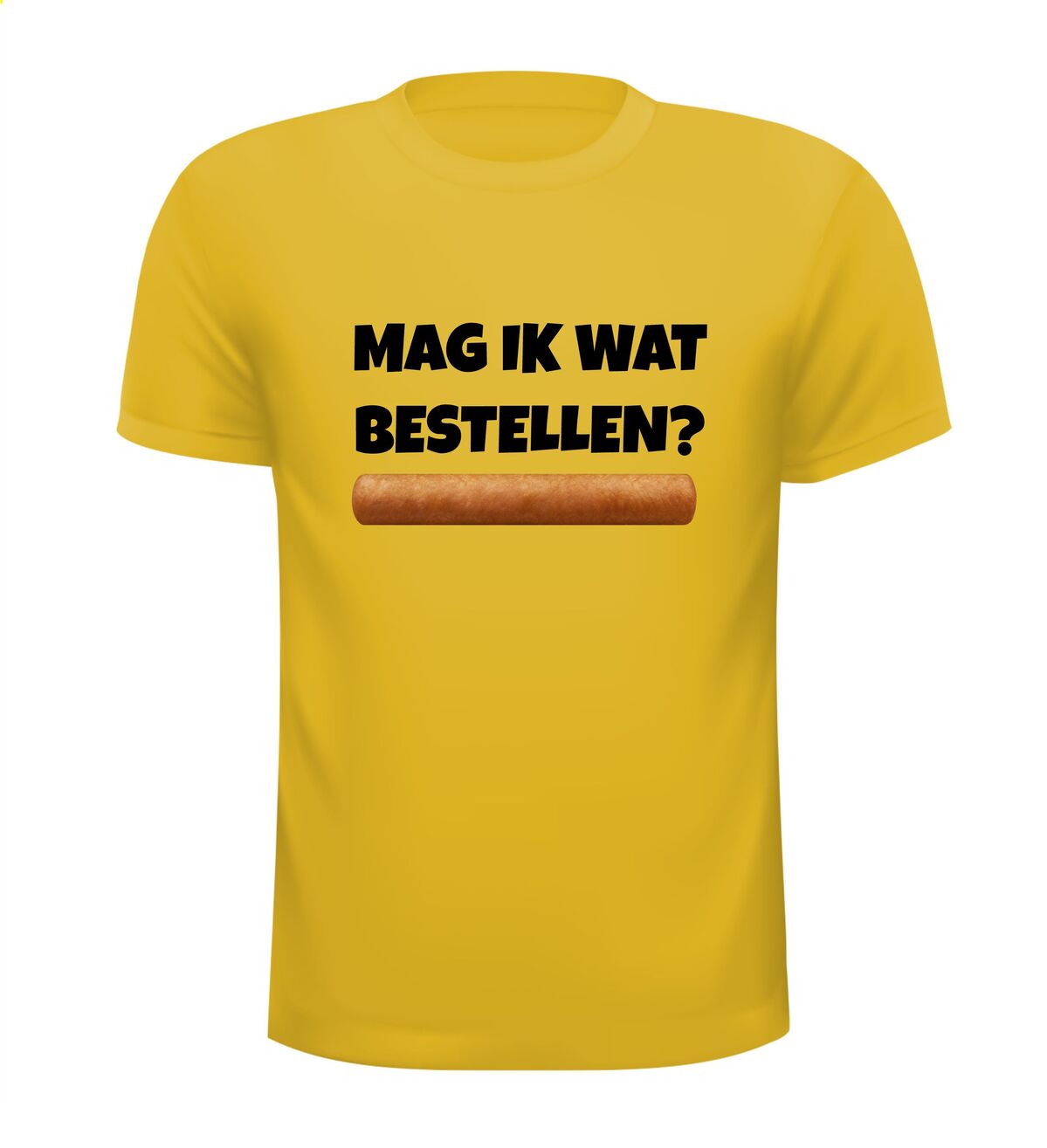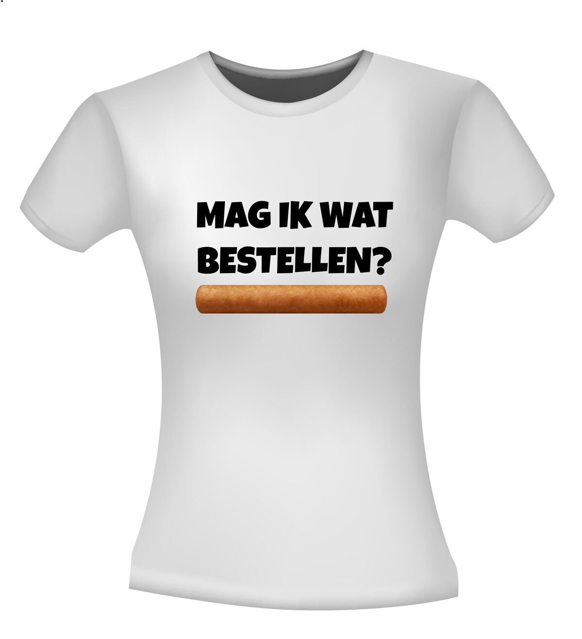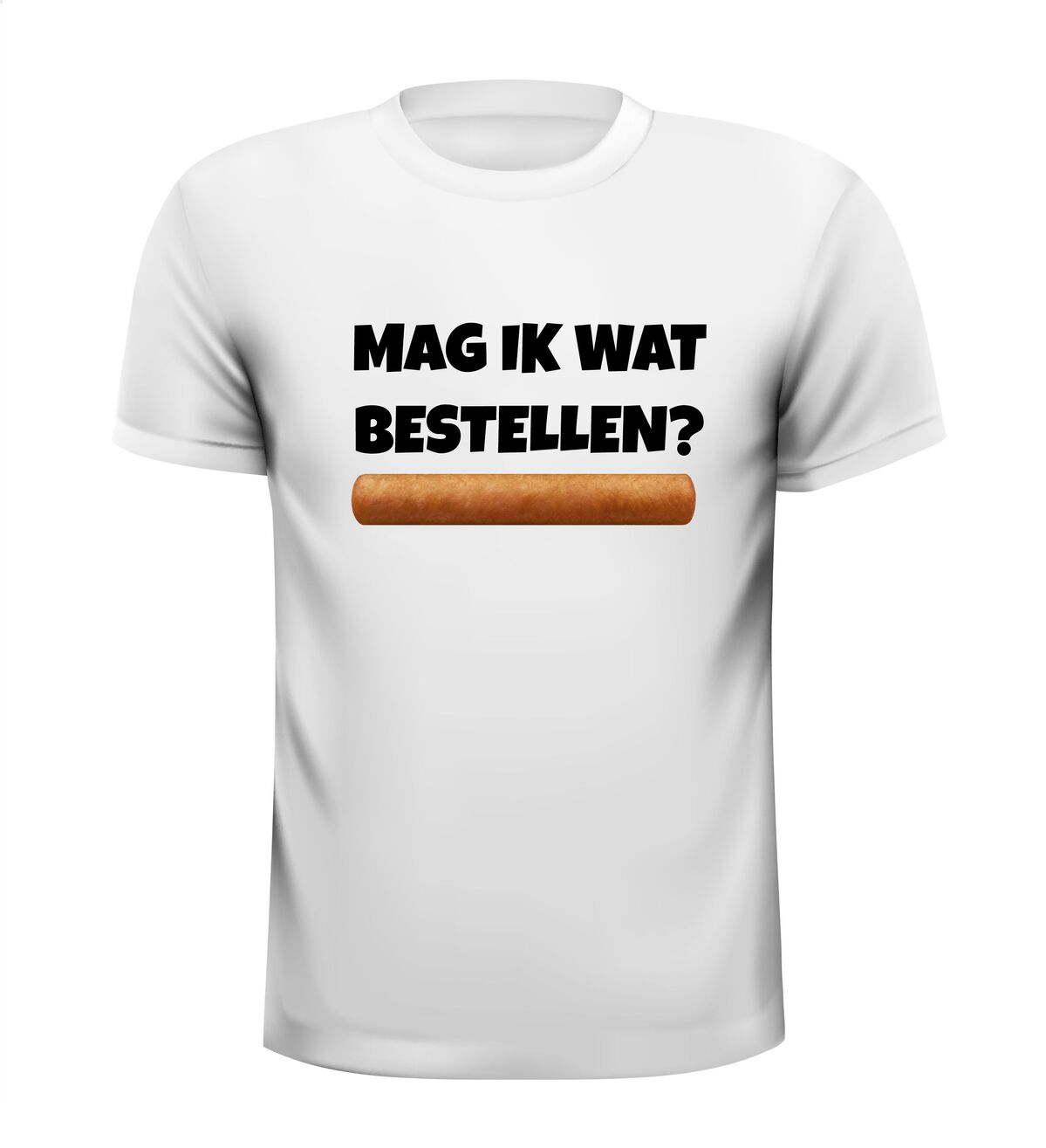 Super leuk frikandellen t-shirt met de tekst : mag ik wat bestellen!