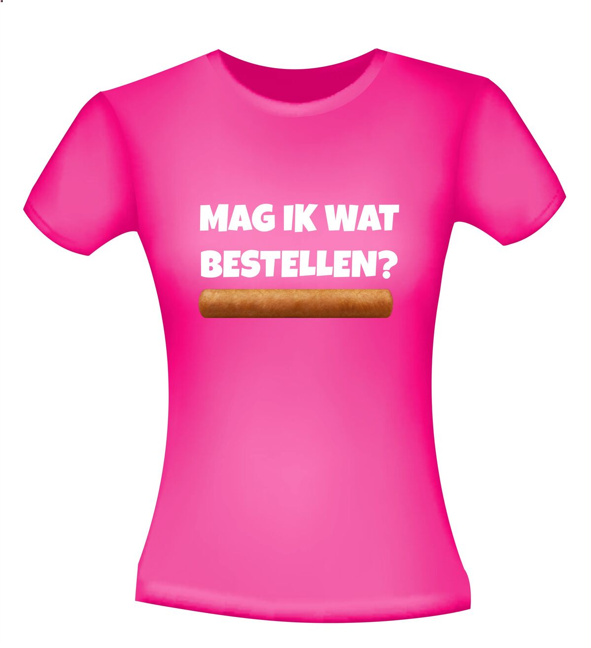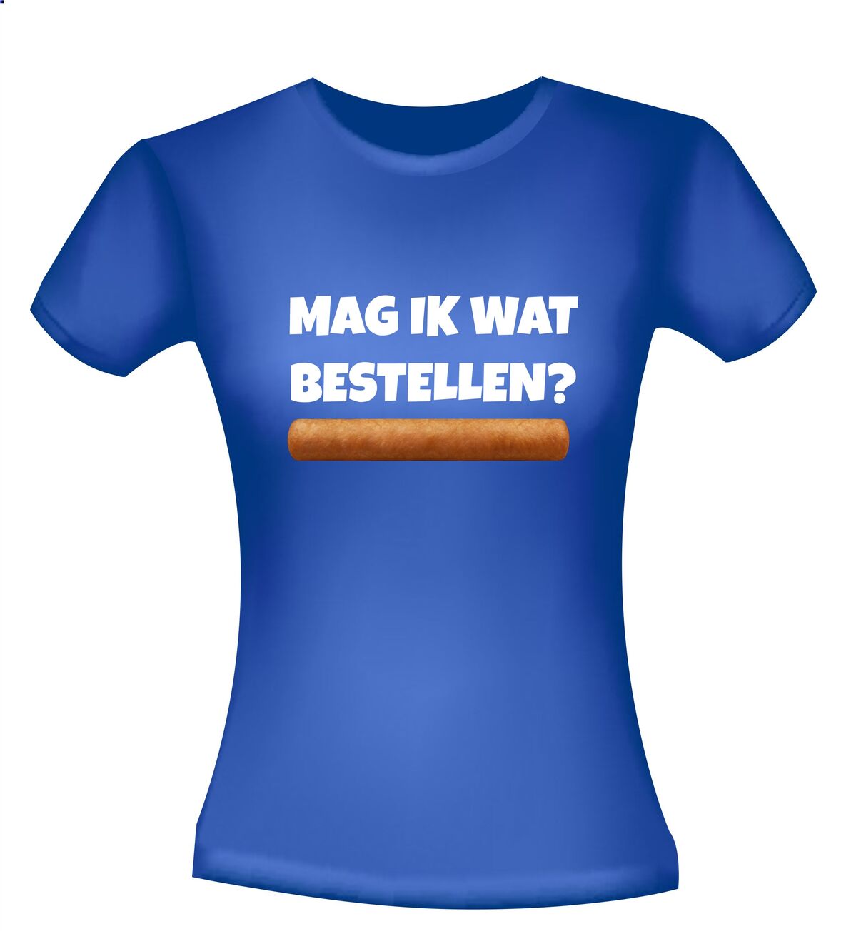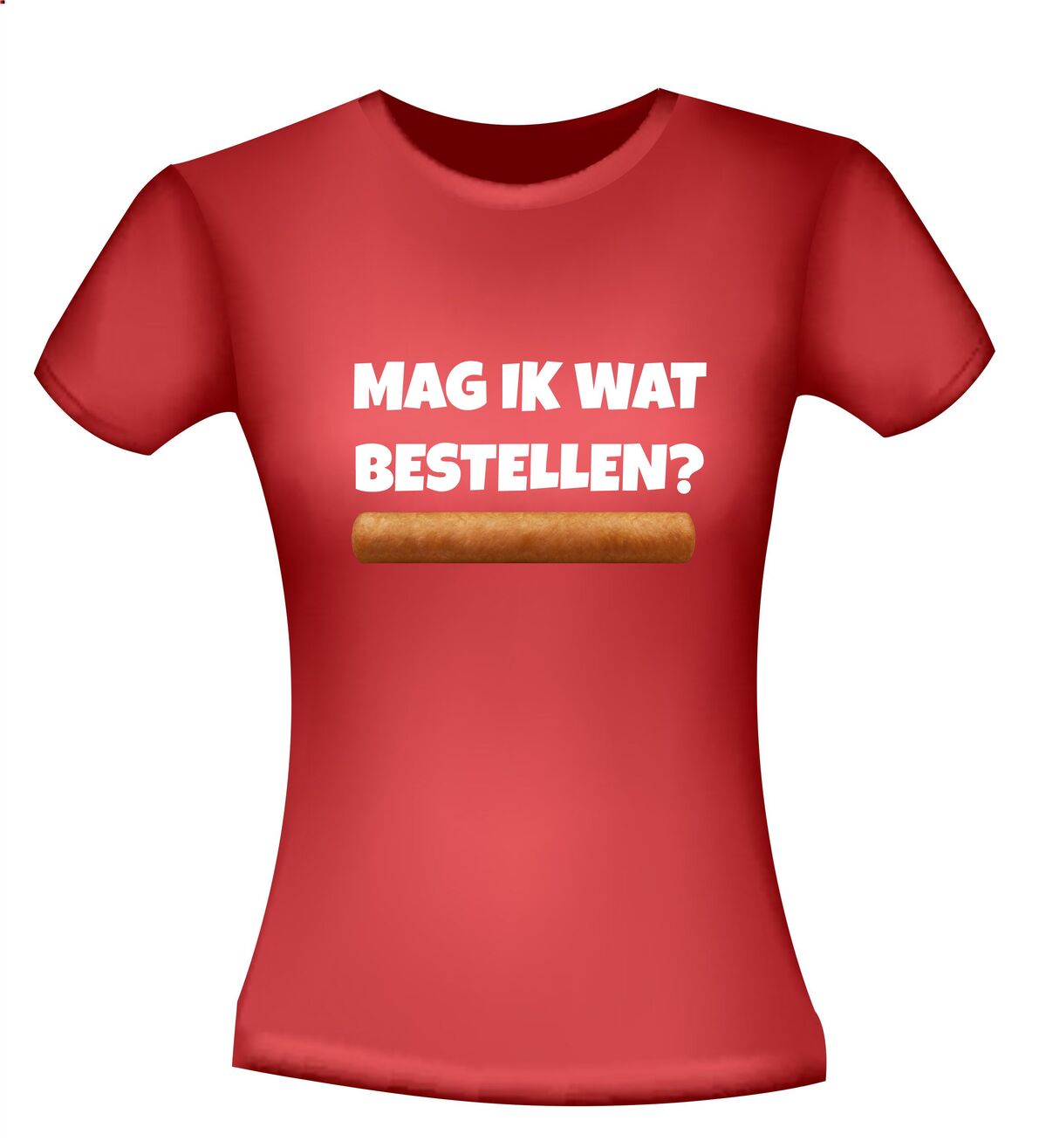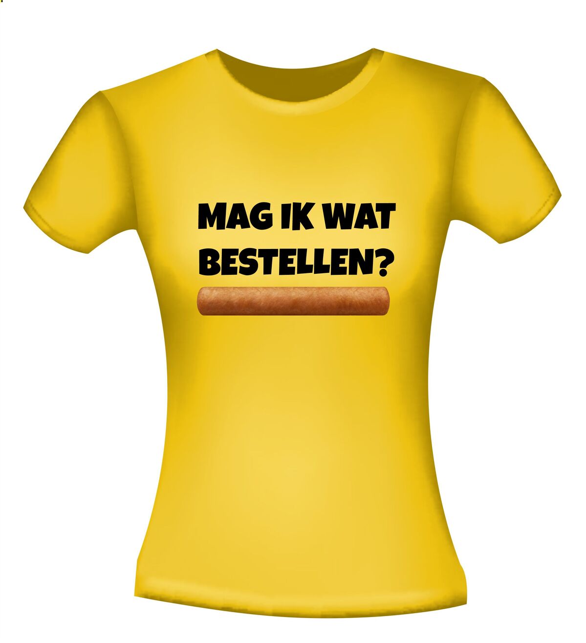 Super leuk frikandellen t-shirt met de tekst : mag ik wat bestellen!