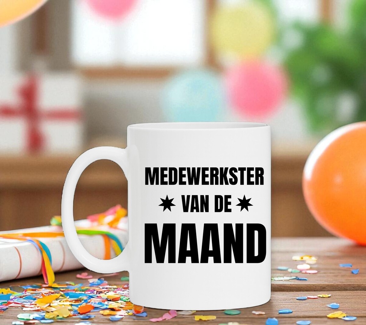 Een prachtige koffie of thee mok voor de medewerkster van de maand. De mok is vaatwasserbestendig, microgolfbestendig en heeft een hoogte van 96mm en een diameter van 80mm.