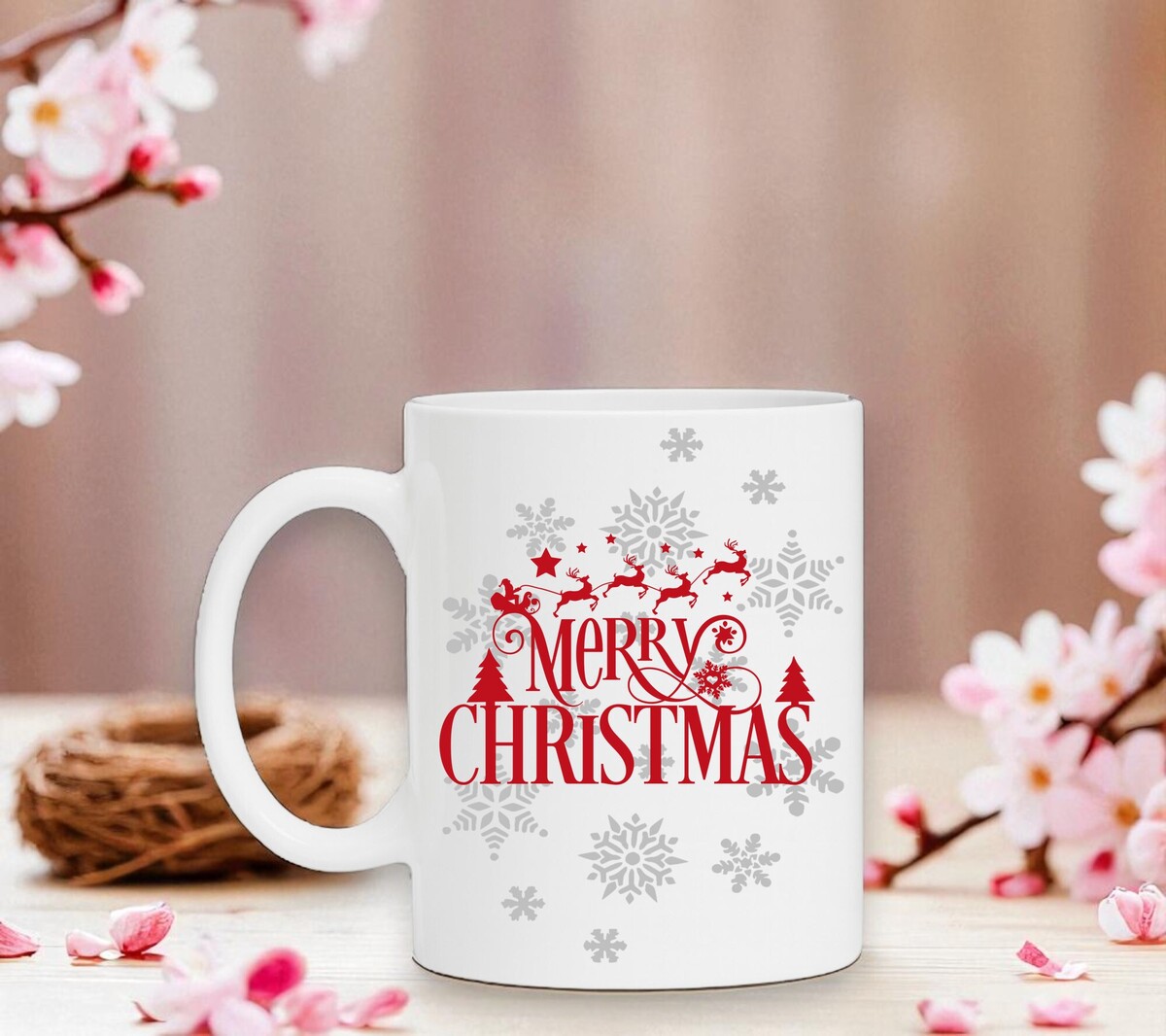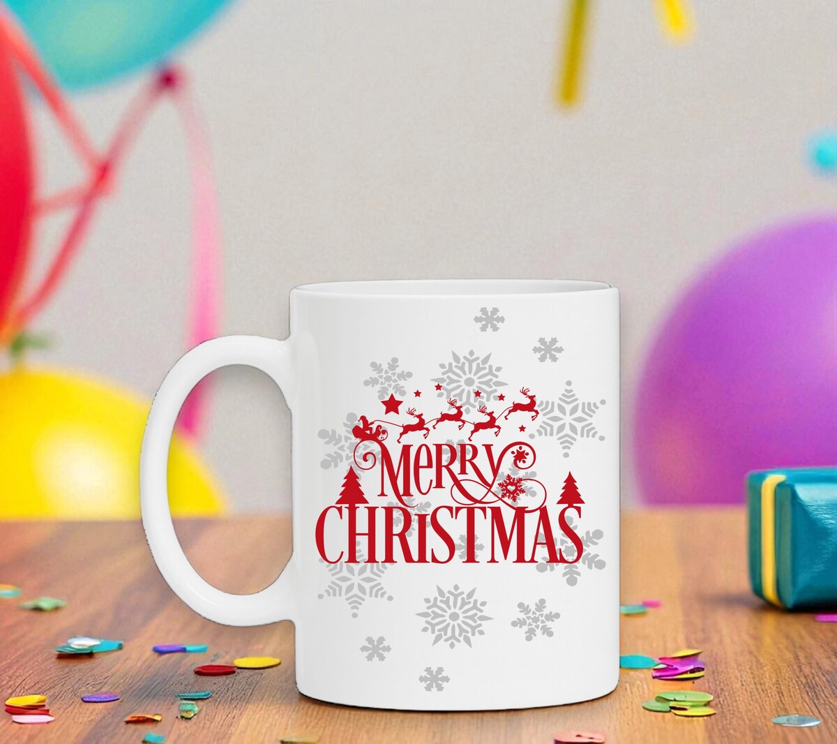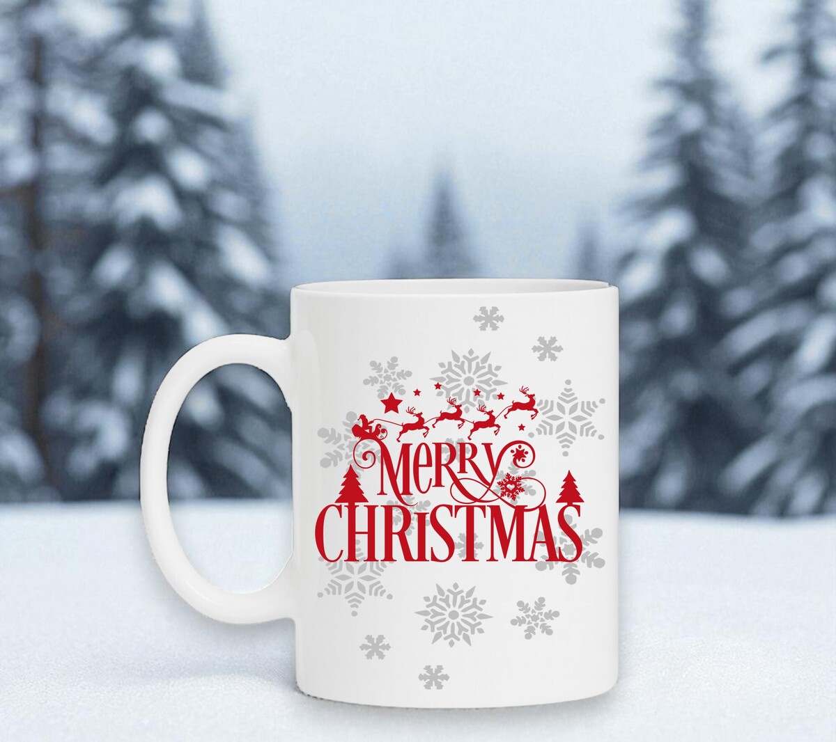 Merry Christmas witte koffie of thee mok met kerstman en rendieren als opdruk.
