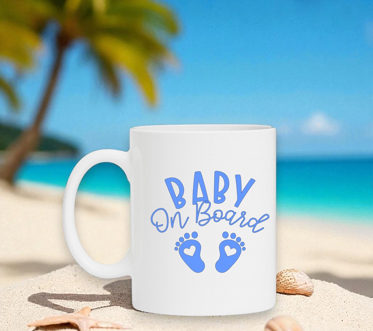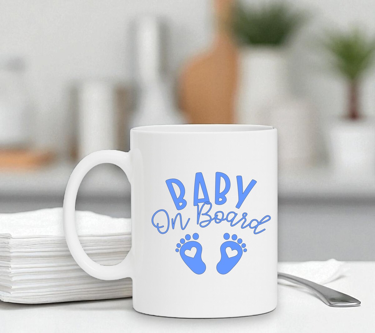 Mok baby on board blauwe tekst voor een jongen. De witte koffie of thee mok is vaatwasserbestendig en magnetronbestendig. De mok heeft een hoogte van 96mm en een diameter van 80mm.