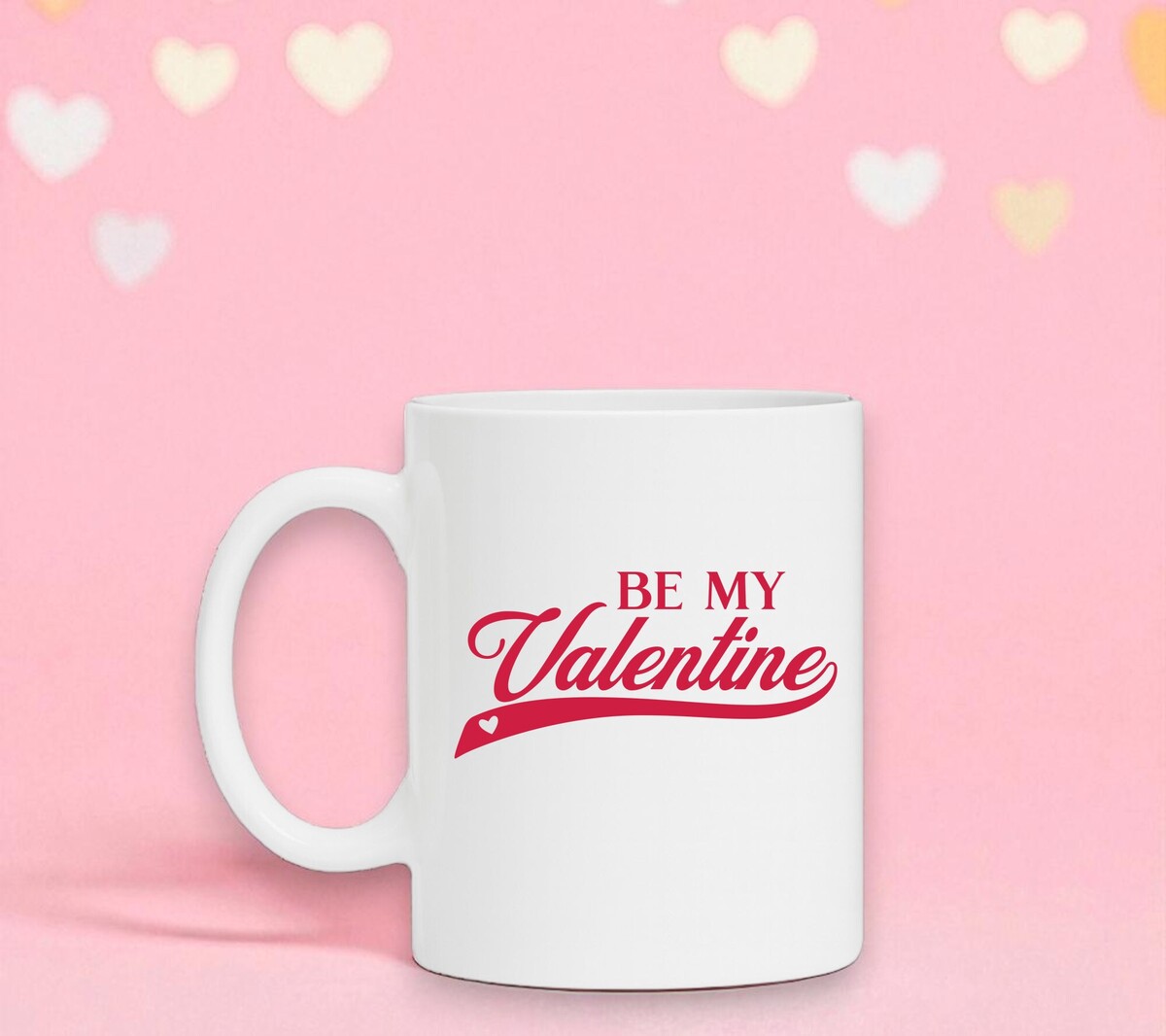 Een leuk kadootje voor je Valentijn. Op de witte Valentijns Mok staat de opdruk in het roze be my Valentine.