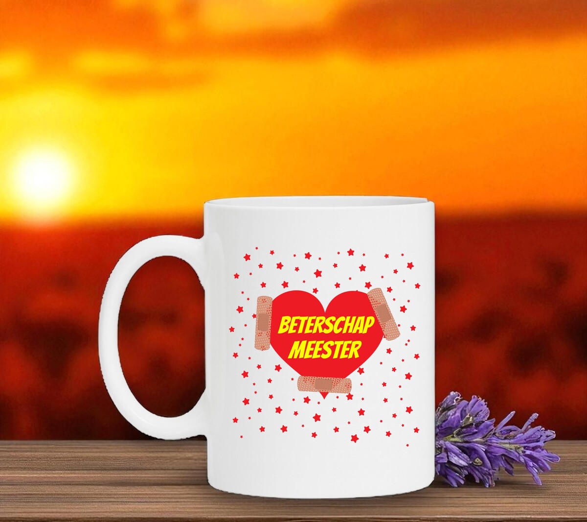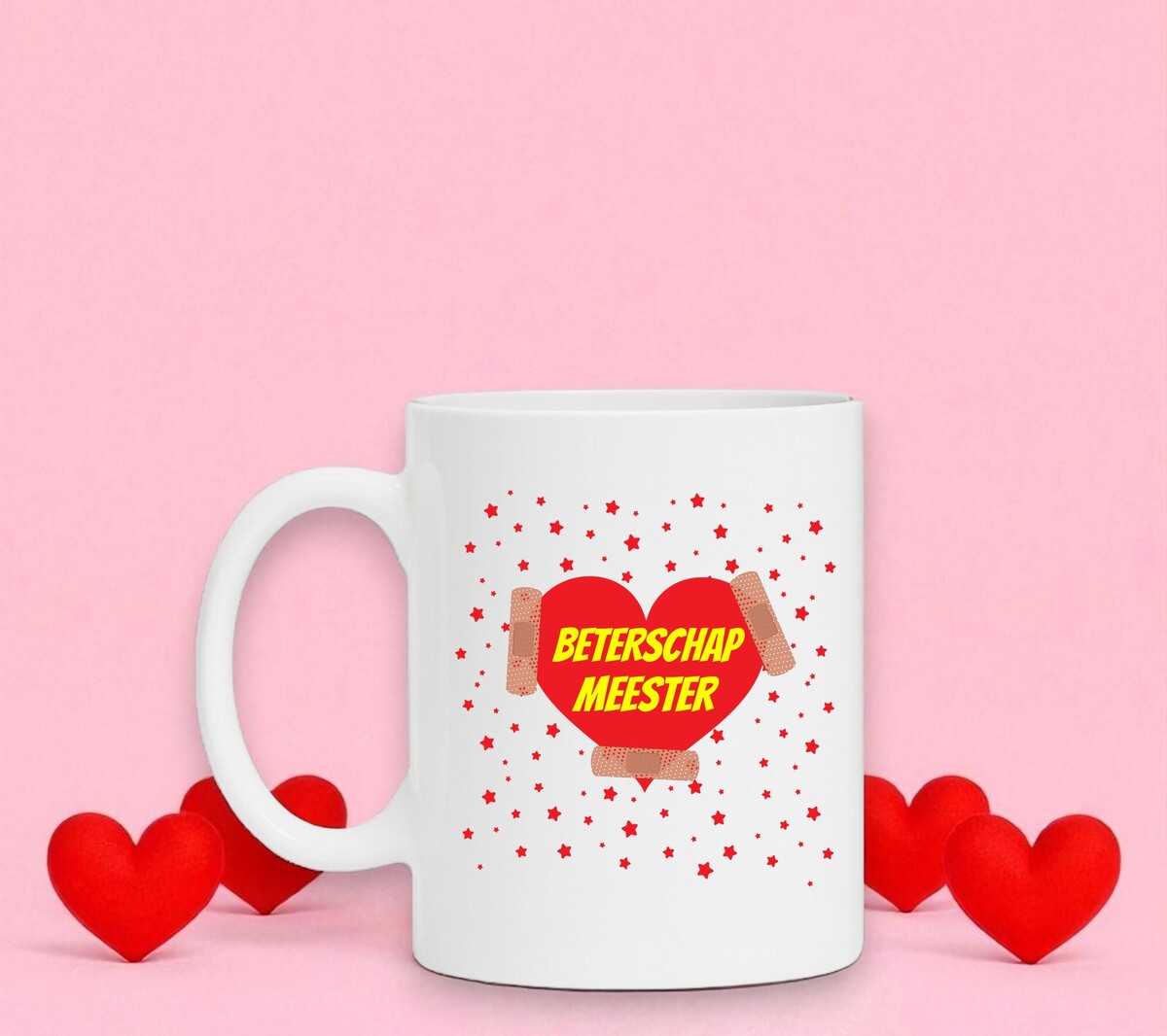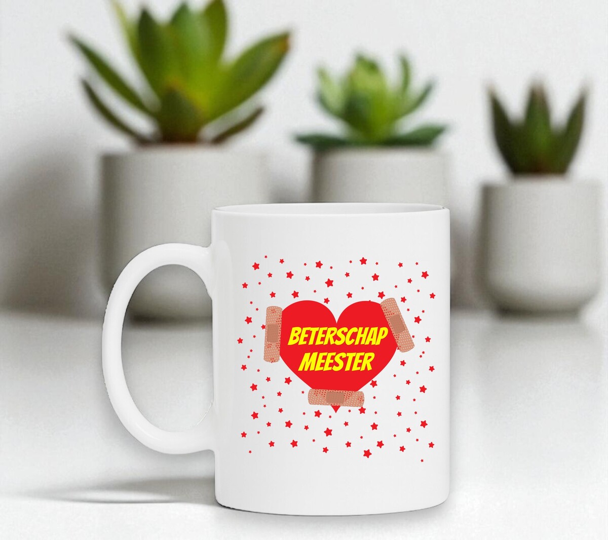 Een lieve koffie of thee mok om je zieke meester mee beterschap te wensen.
