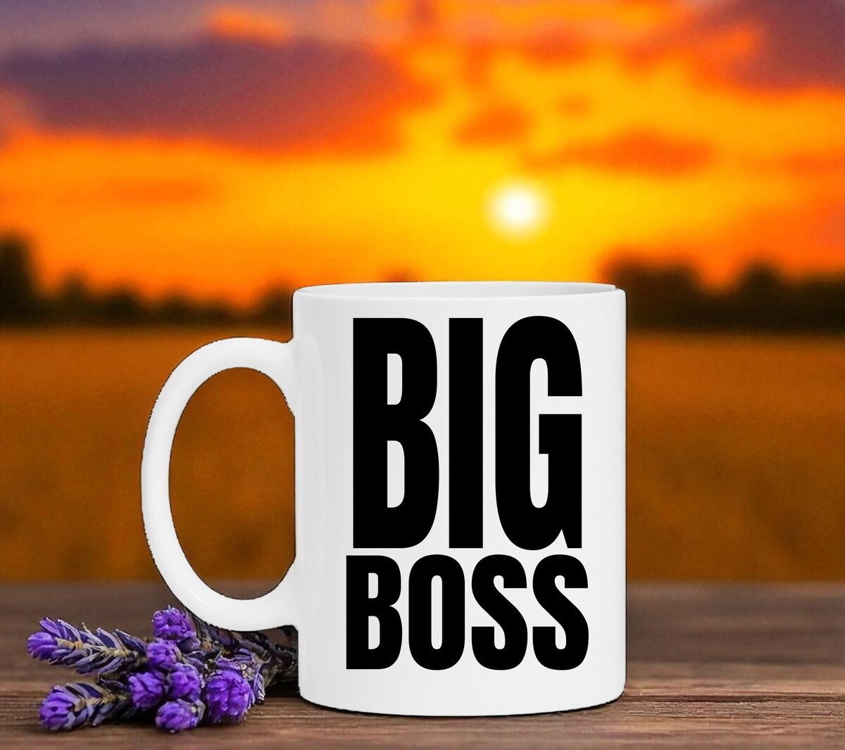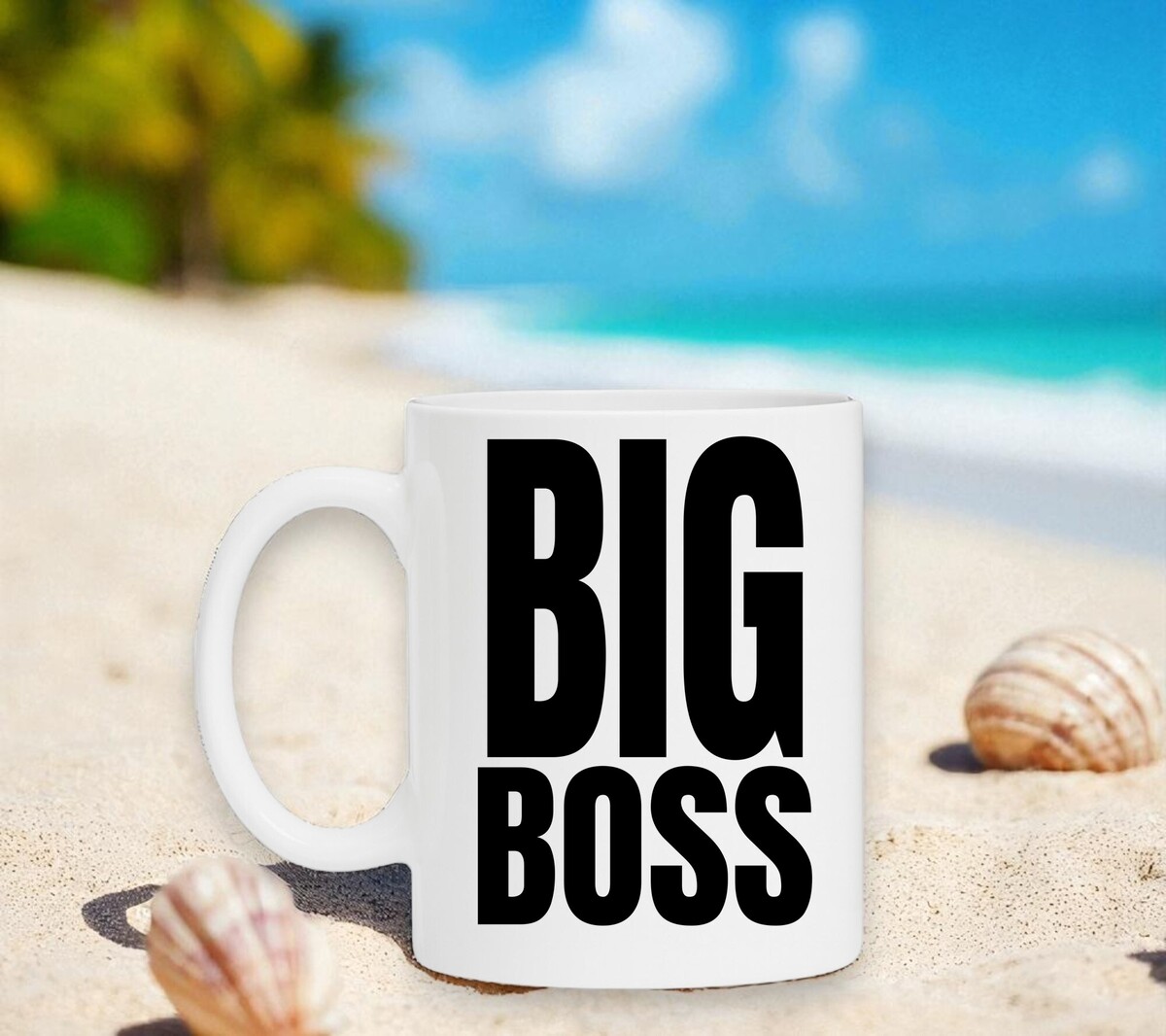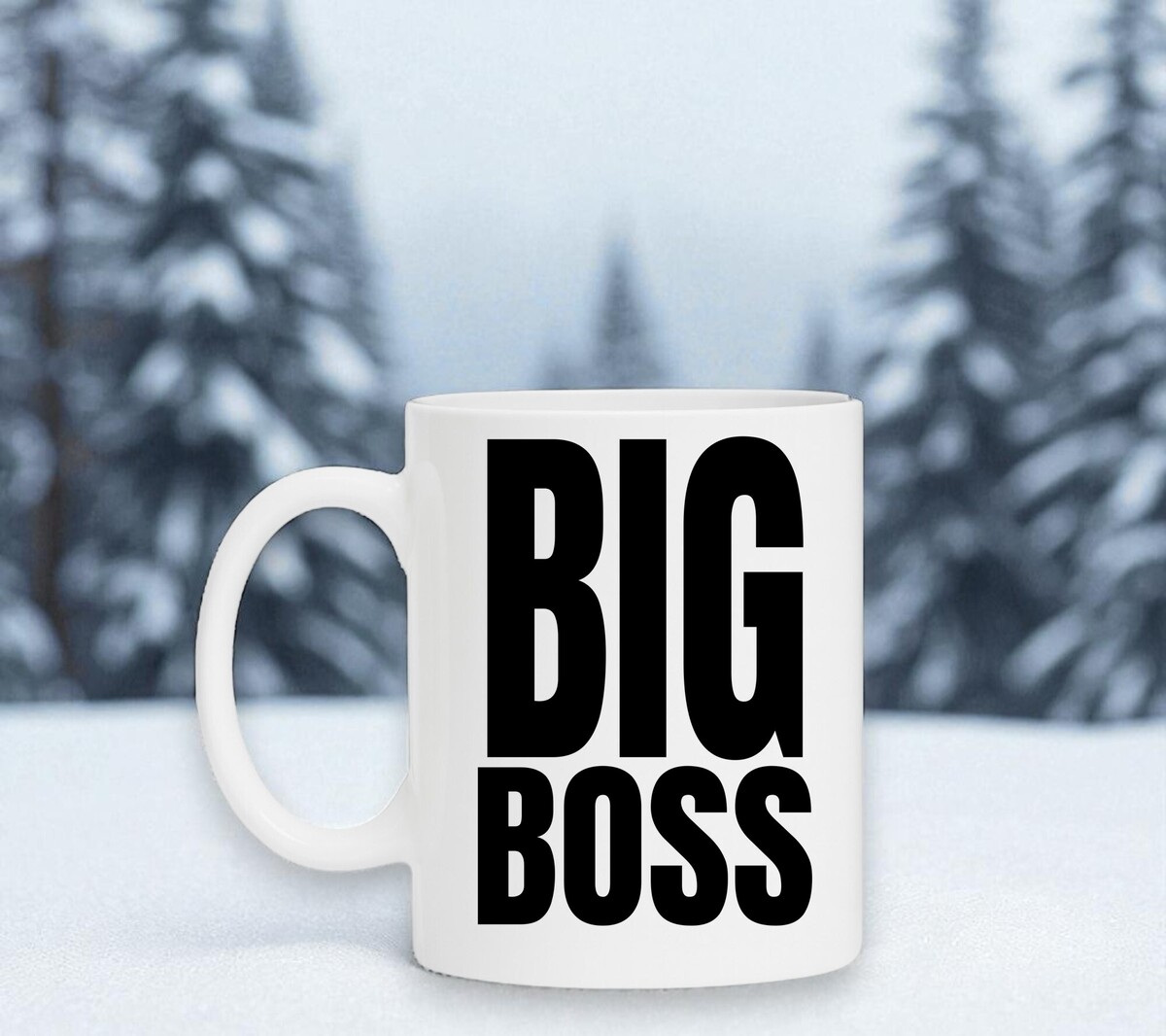 Mok big boss. De witte koffie of thee mok is vaatwasserbestendig en magnetronbestendig. De mok heeft een hoogte van 96mm en een diameter van 80mm.