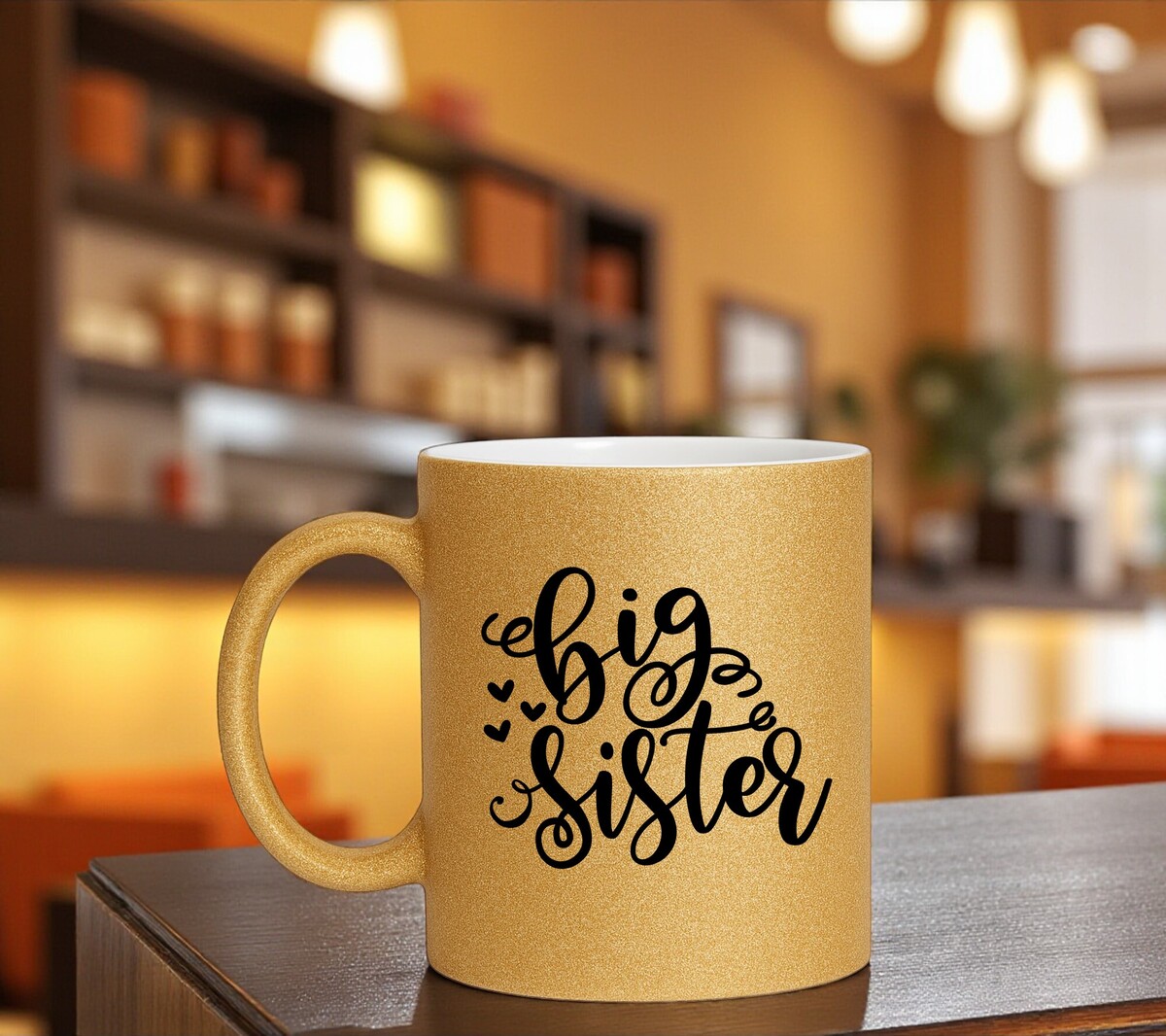 De gouden glittermok heeft een hoogte van 96 mm, een diameter van 80 mm en een inhoud van circa 330 ml. Door de glittercoating is deze mok niet geschikt voor de magnetron en wordt handwas aanbevolen om de opdruk en glans te behouden.