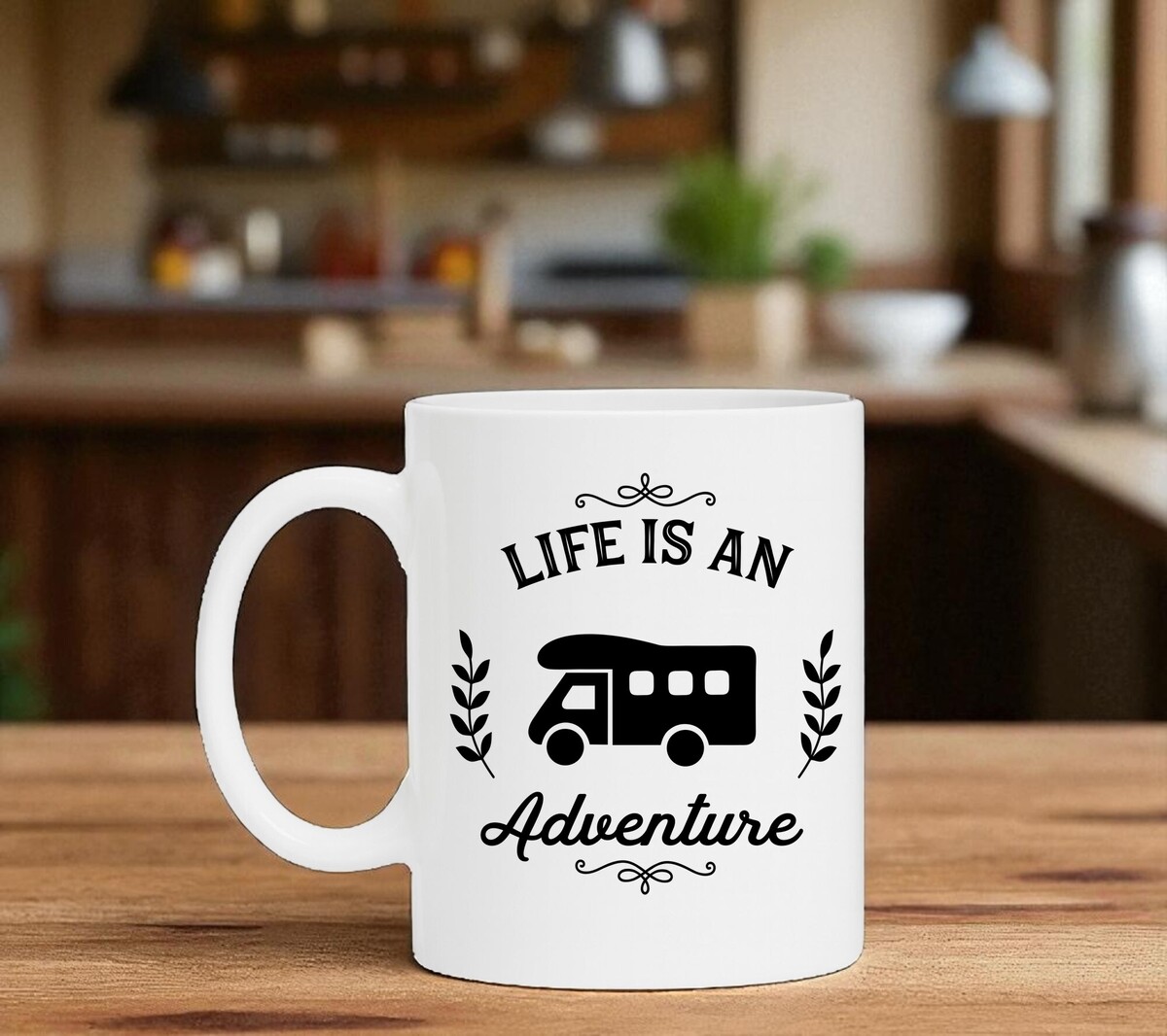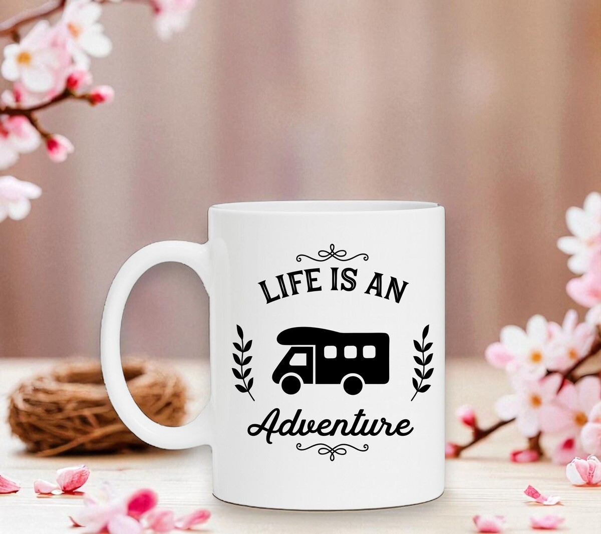 Een prachtige witte koffie mok of thee mok voor als je met de camper op stap gaat. De mok is vaatwasserbestendig en magnetronbestendig en heeft een hoogte van 96mm en een diameter van 80mm.
