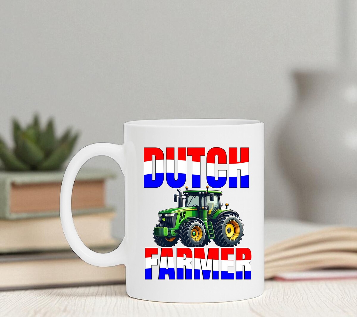 Mok Dutch Farmer Koffie mok voor de Nederlandse boer. De witte koffie of thee mok is vaatwasserbestendig en magnetronbestendig. De mok heeft een hoogte van 96mm en een diameter van 80mm.